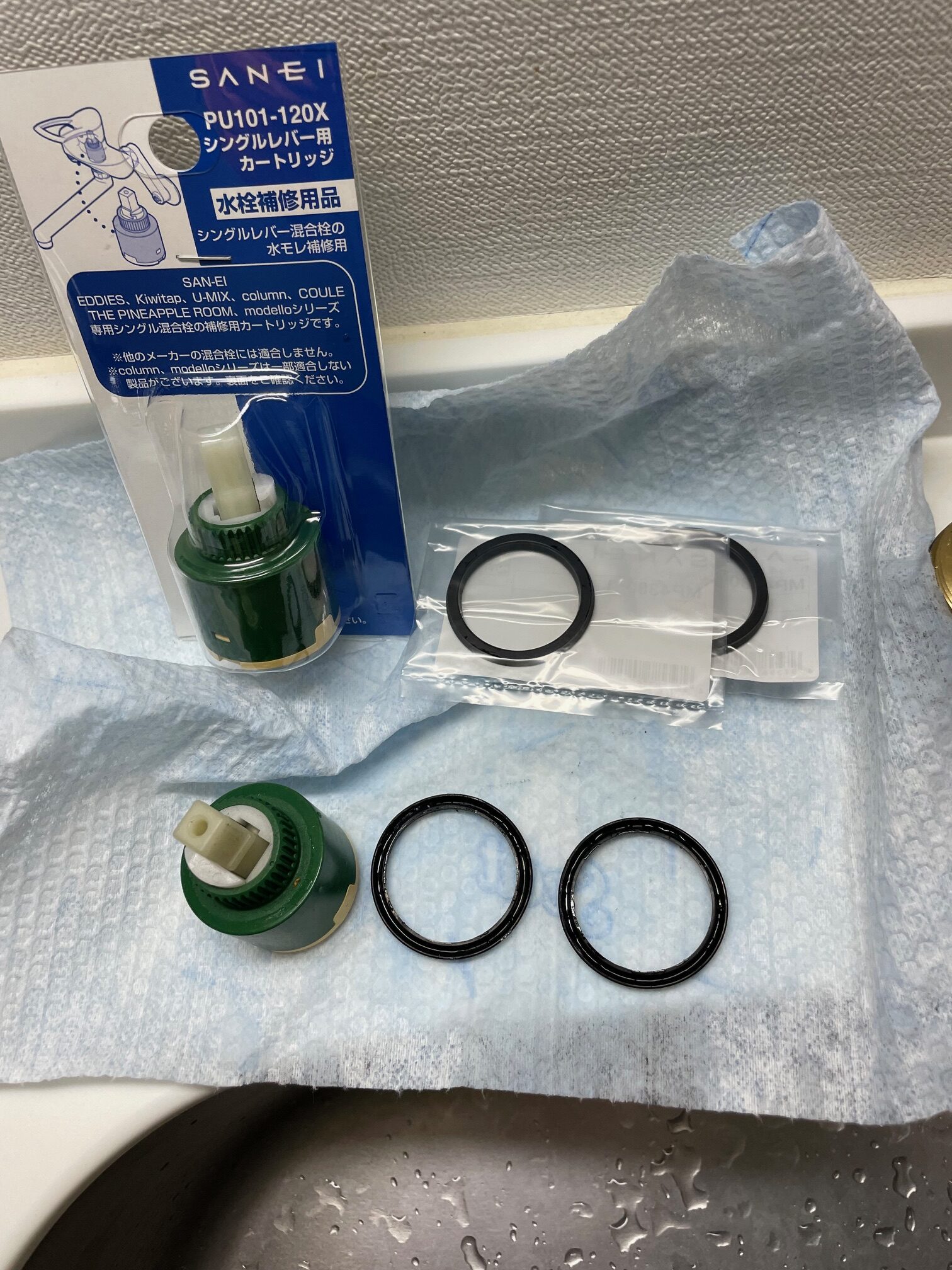 内部部品の劣化による水漏れでしたので、カートリッジとパッキン交換で改善しております。