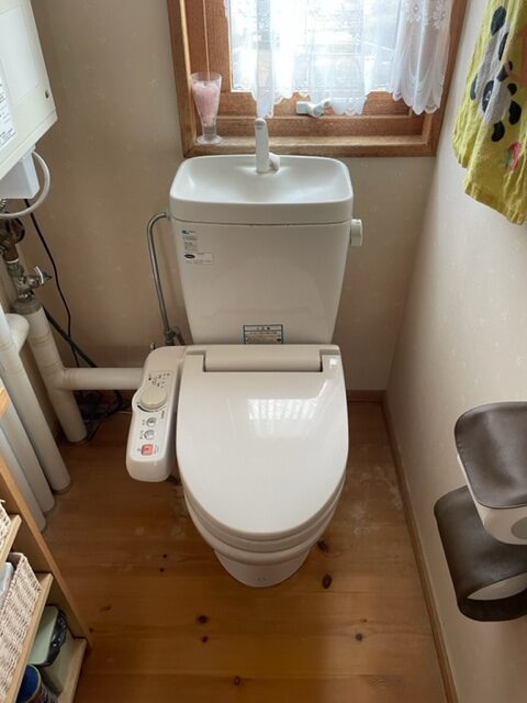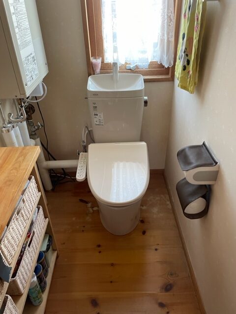 温水洗浄便座の交換とトイレ本体も年数が経っていたため交換しました