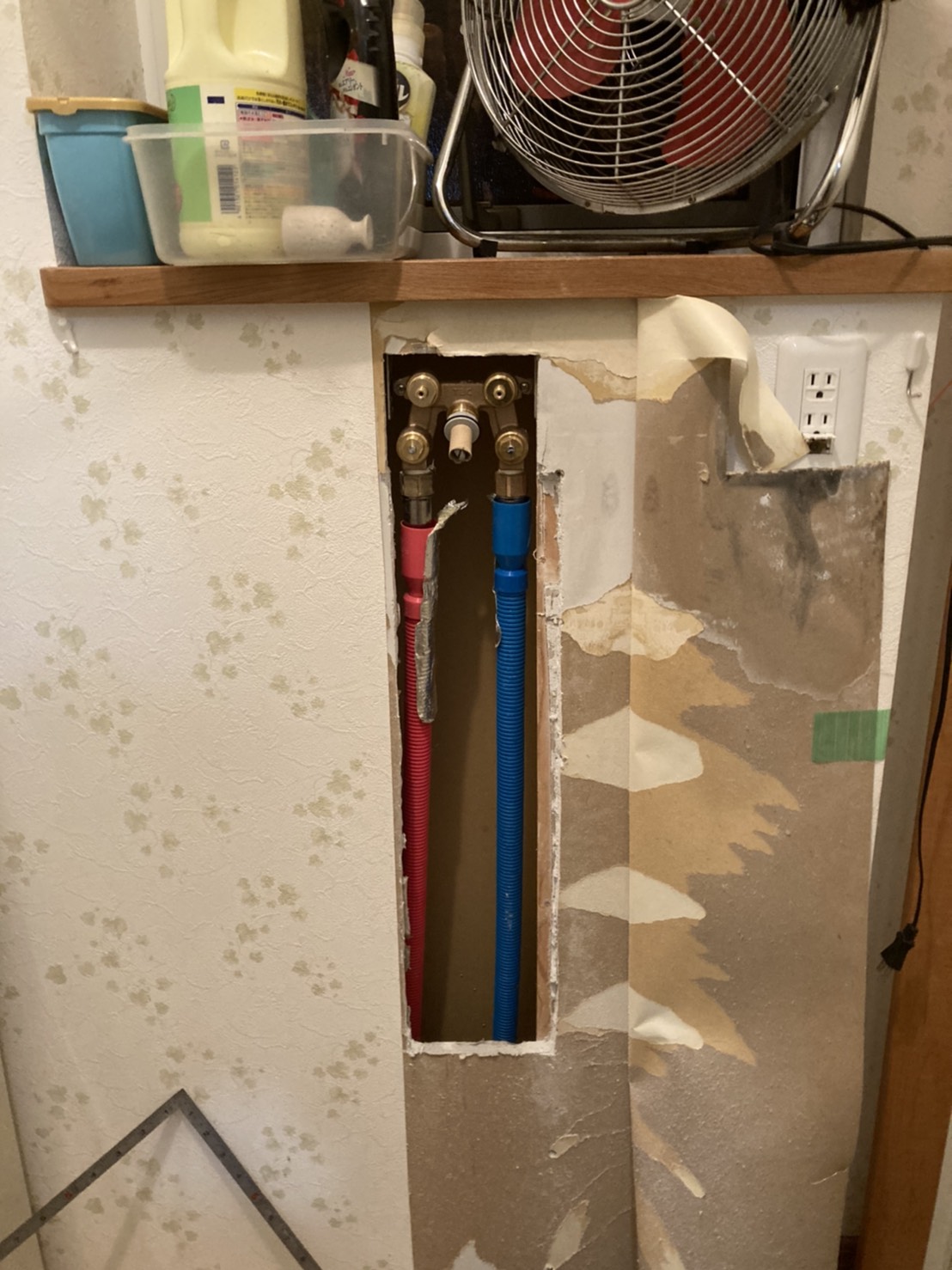 壁に埋め込み式の洗濯機蛇口だった為、壁も水に濡れて崩れていた為、蛇口交換と壁作成の見積もりを事前に提示しご納得いただき作業を行いました。