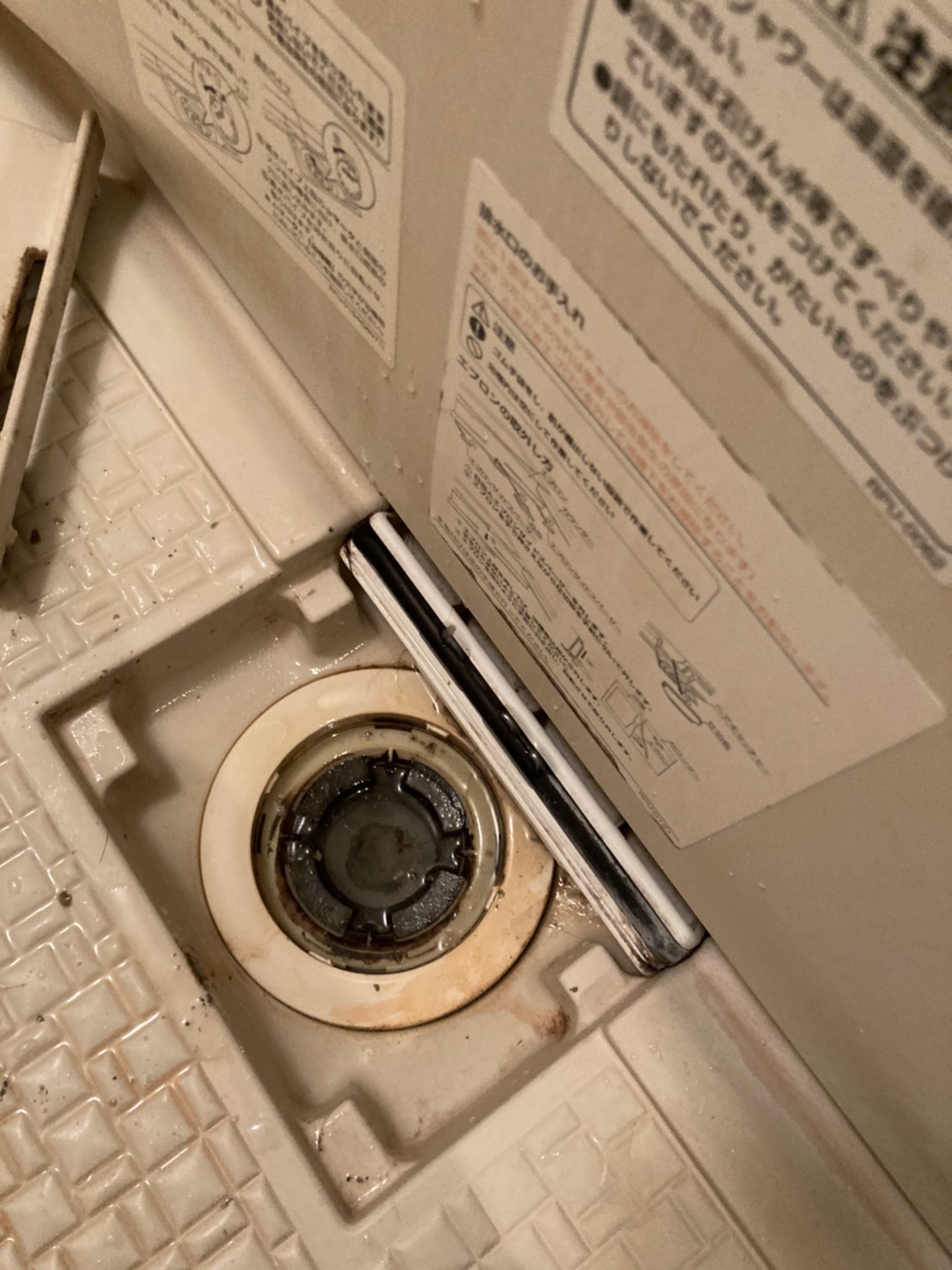 症状を確認した所、強力につまっていてお風呂の排水をすると洗濯機の排水から汚水が溢れてきてしまう状態でした。
