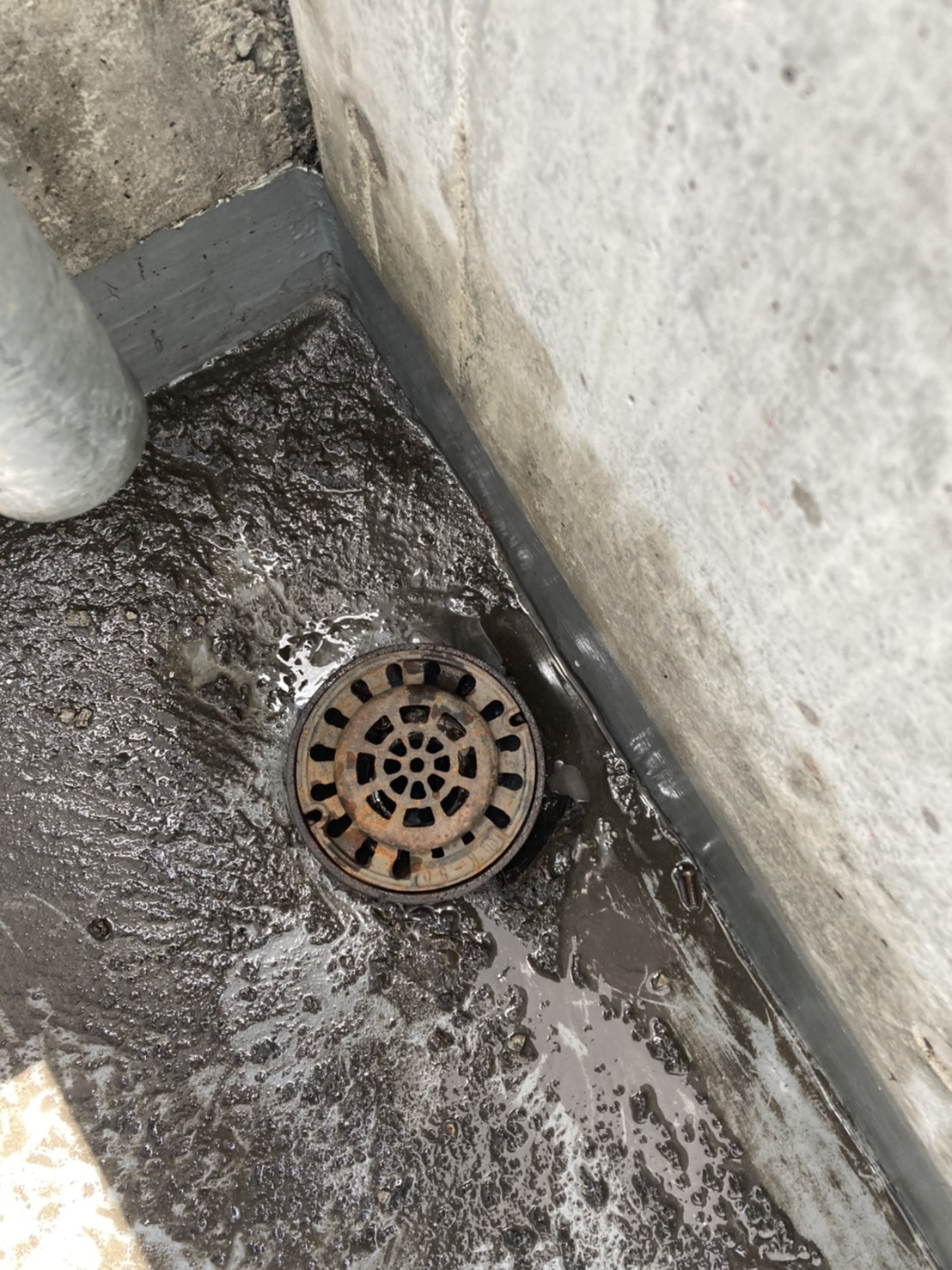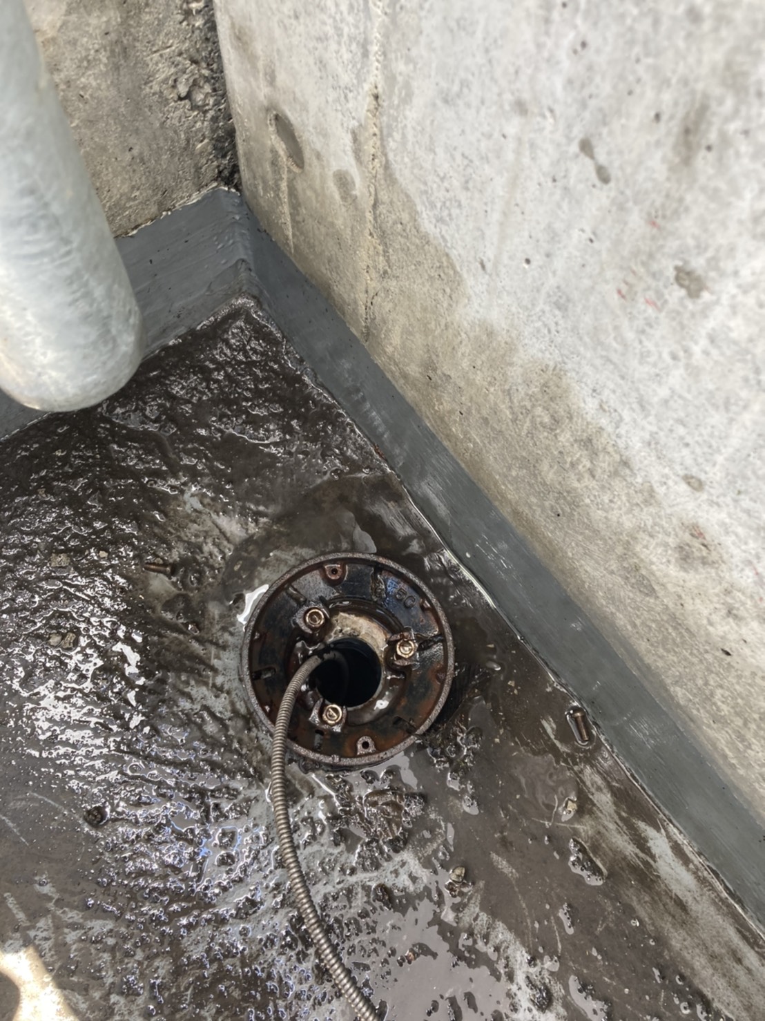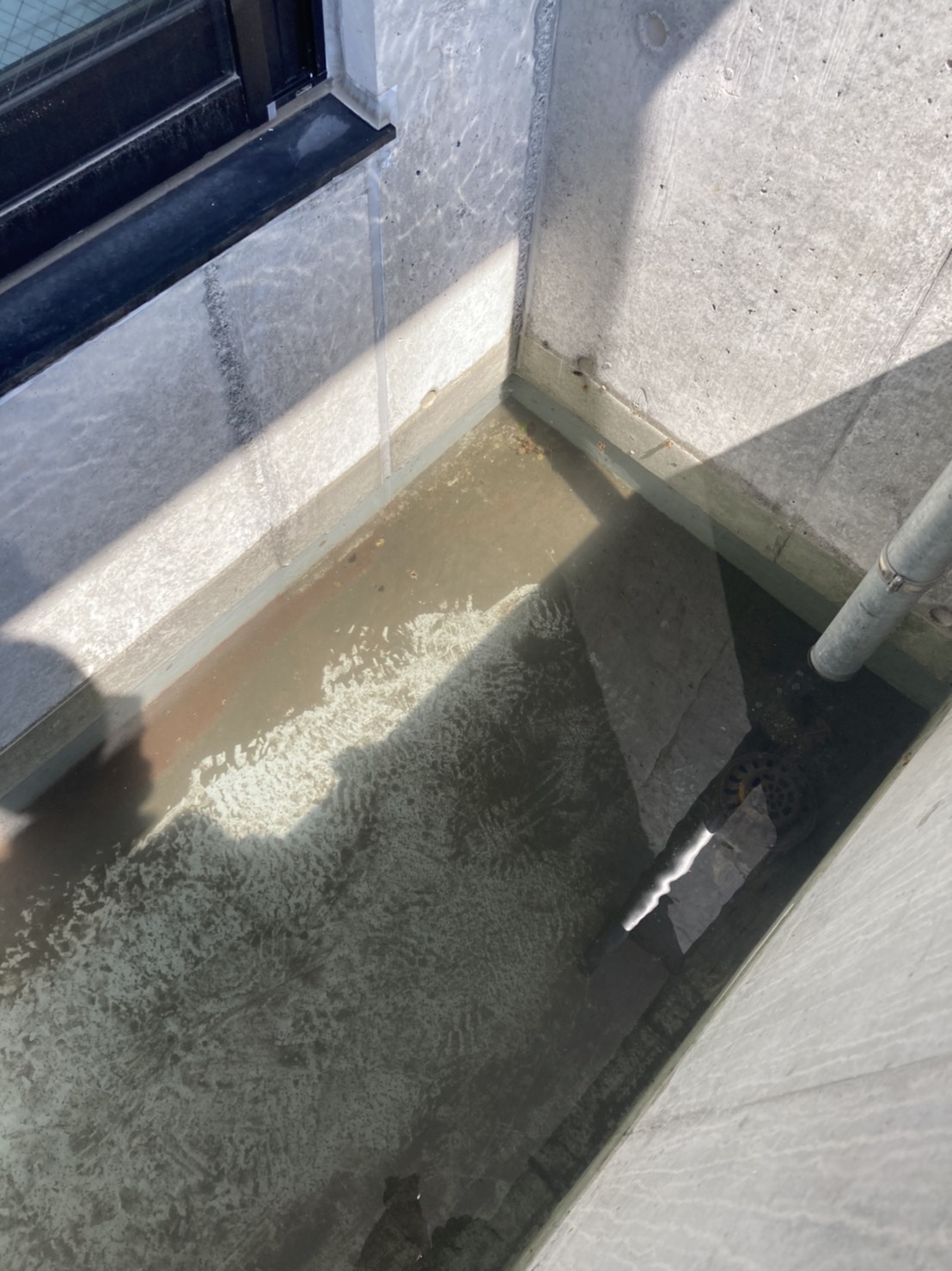 症状を確認した所、強力につまっていてベランダから水が溢れてきてしまう状態でした。