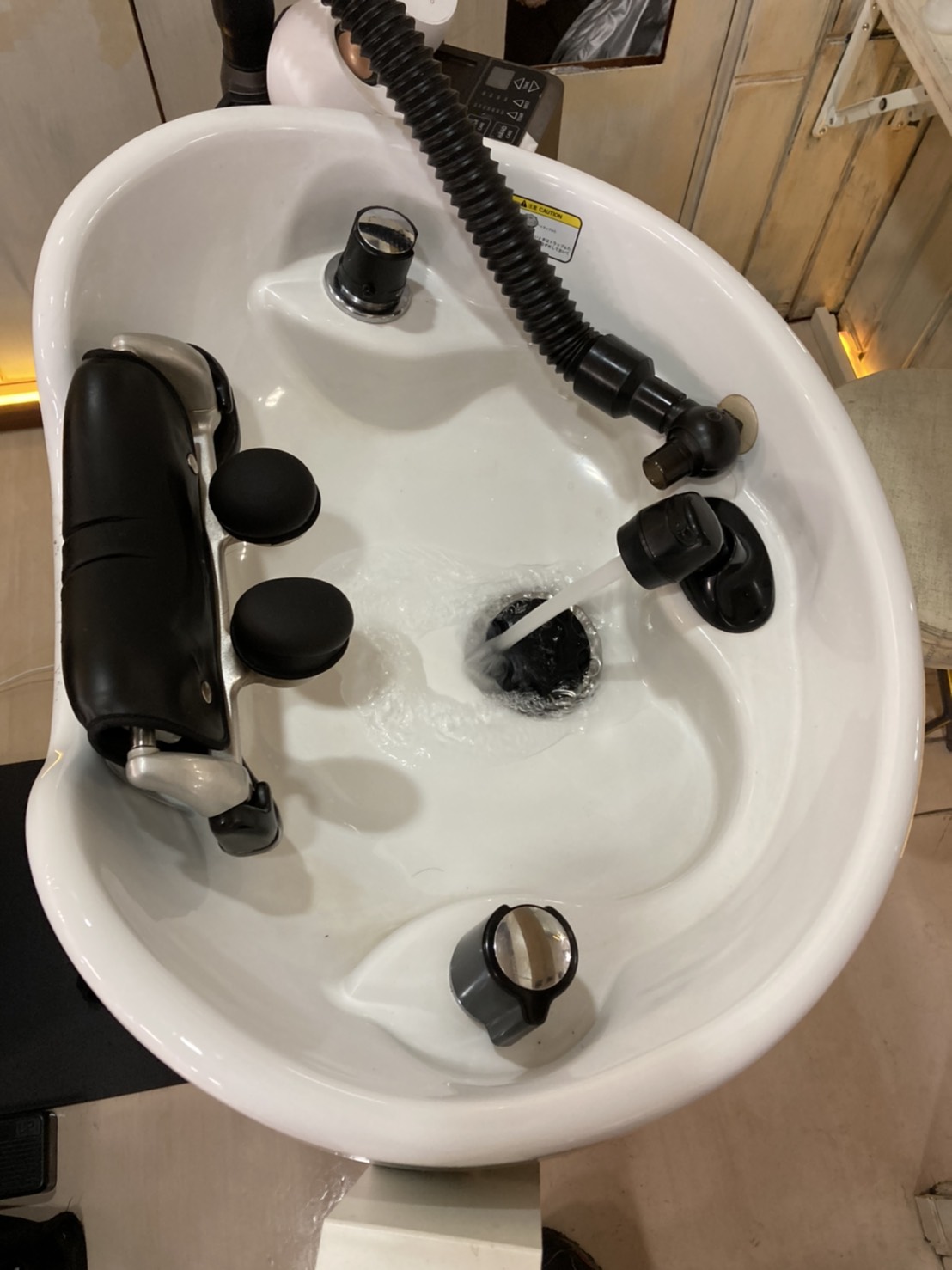 お伺いした所はとある美容室でシャンプー台の蛇口のハンドルが回らなくなり水を止めれなくなったとの事でした。