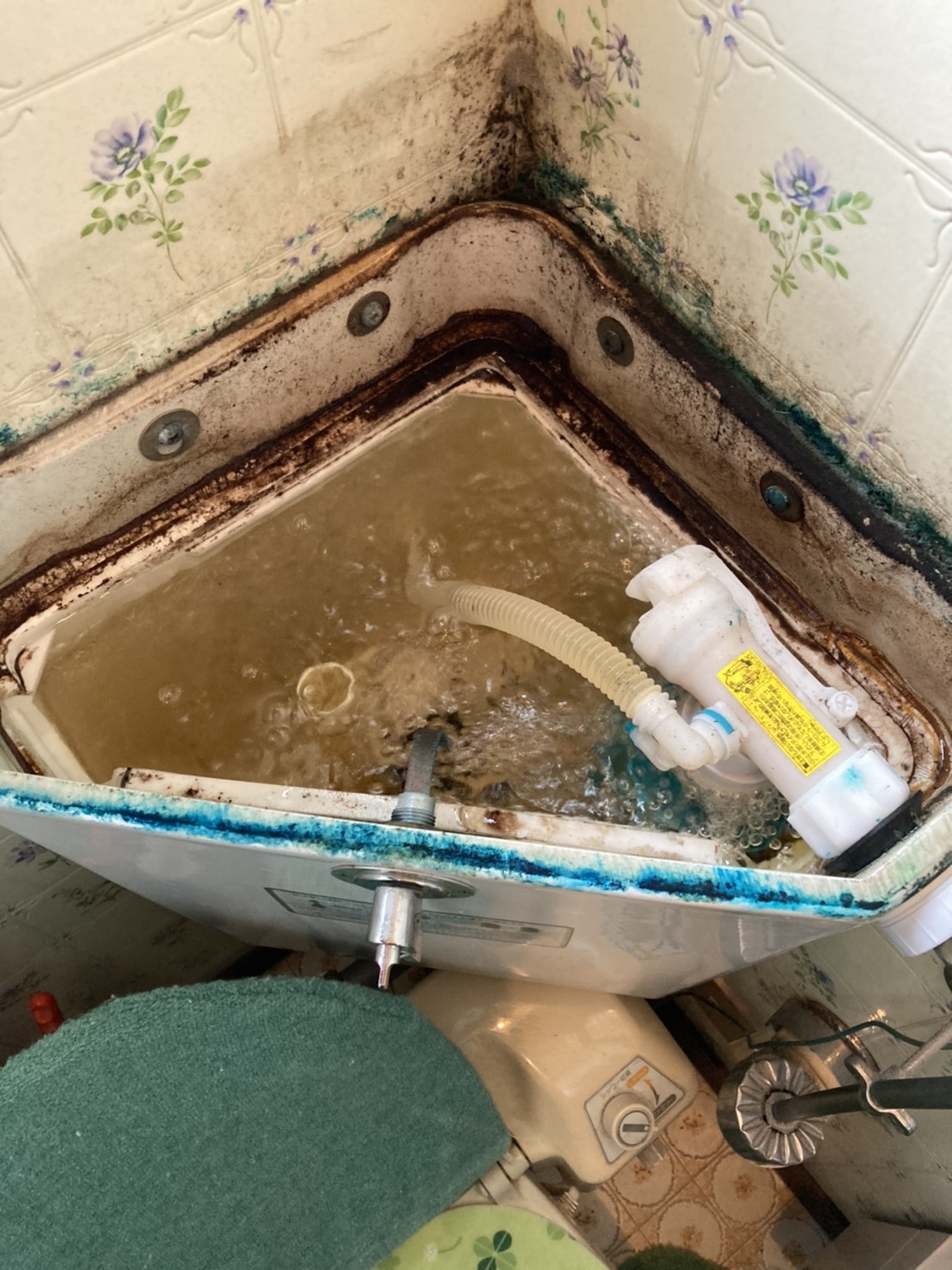 タンク内を確認した所、トイレの給水の部品が壊れて水が出続けている事が原因でした。