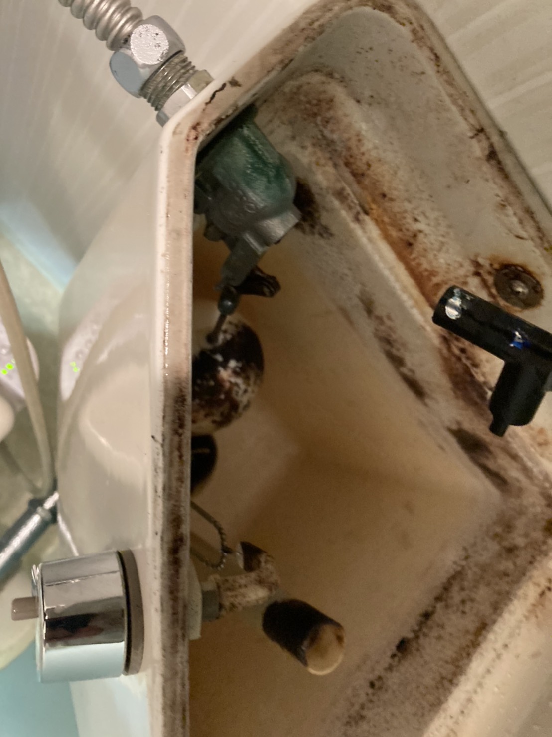 タンク内を確認した所、トイレの給水の部品が壊れて水が出続けている事が原因でした。