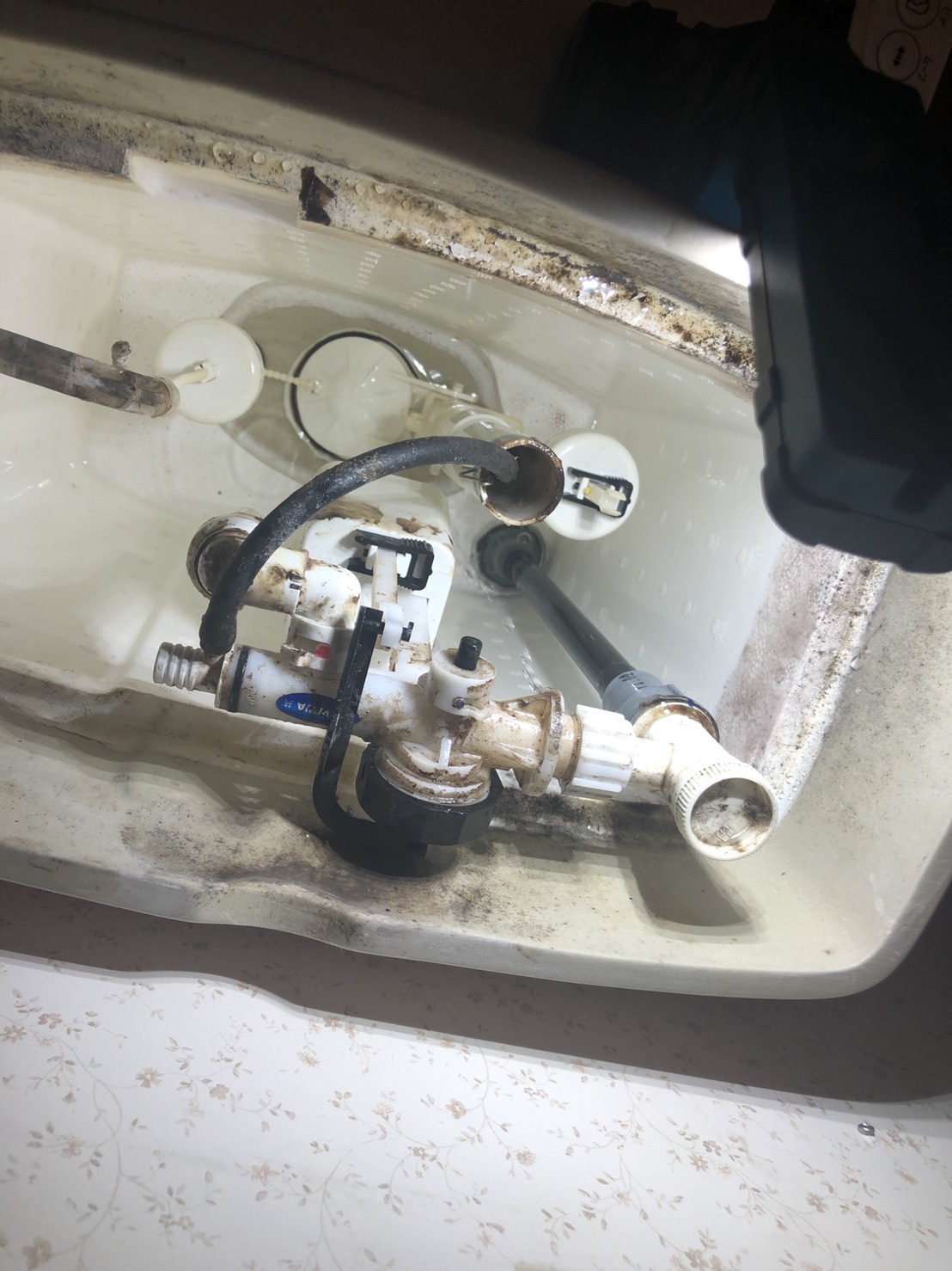 タンク内を確認した所、トイレの給水の部品が壊れていた為、部品交換の見積もりを事前に提示しご納得いただき作業を行いました。