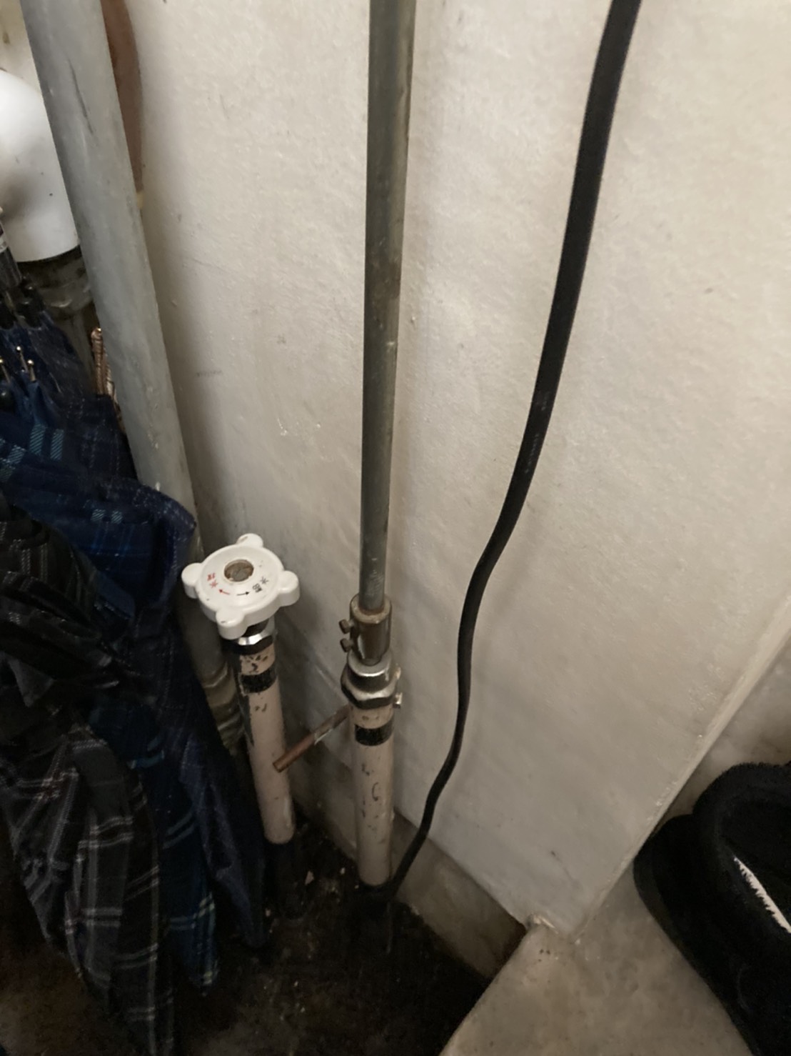 本日はお客様から水抜栓からシューという音が聞こえる為見てほしいと入電があり即出動しました。