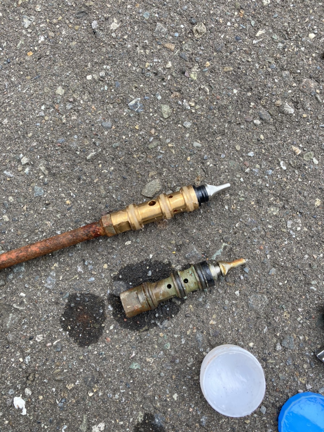 通水し確認してみた所、水抜栓本体から水漏れしていた為、ピストン交換の見積もりを事前に提示しご納得いただき作業を行いました。