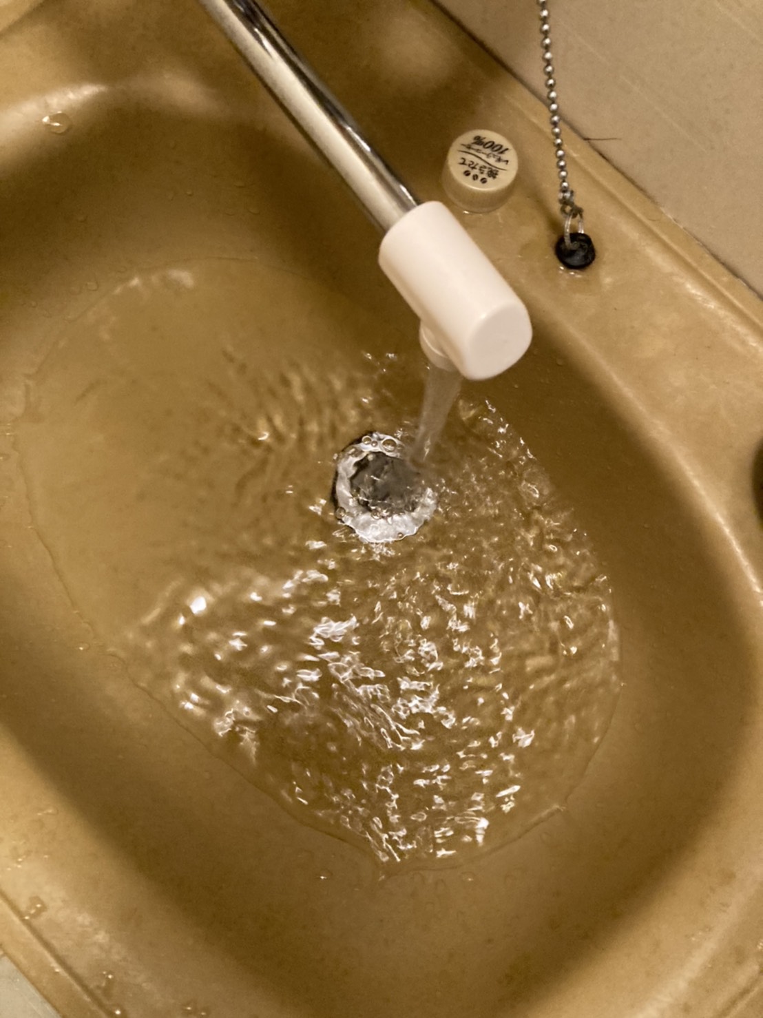 お伺いした所はアパートの一室で、ユニットバスの洗面がつまって流れなくなっていました。