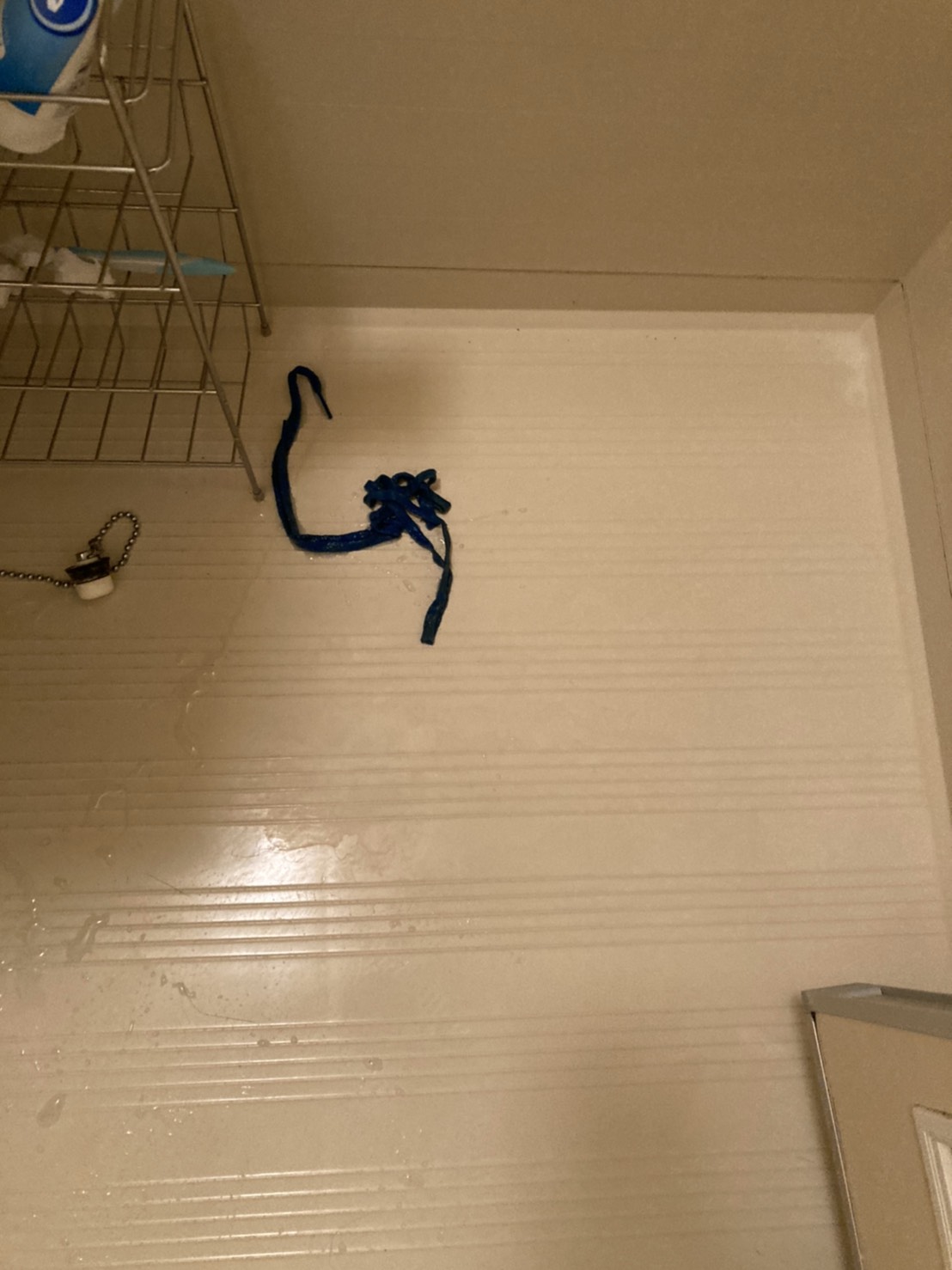 お客様に心当たりをお尋ねした所、靴紐を流してしまったかもしれないとのことでしたので、修理の見積りを事前に提示しご納得いただき作業を行いました。