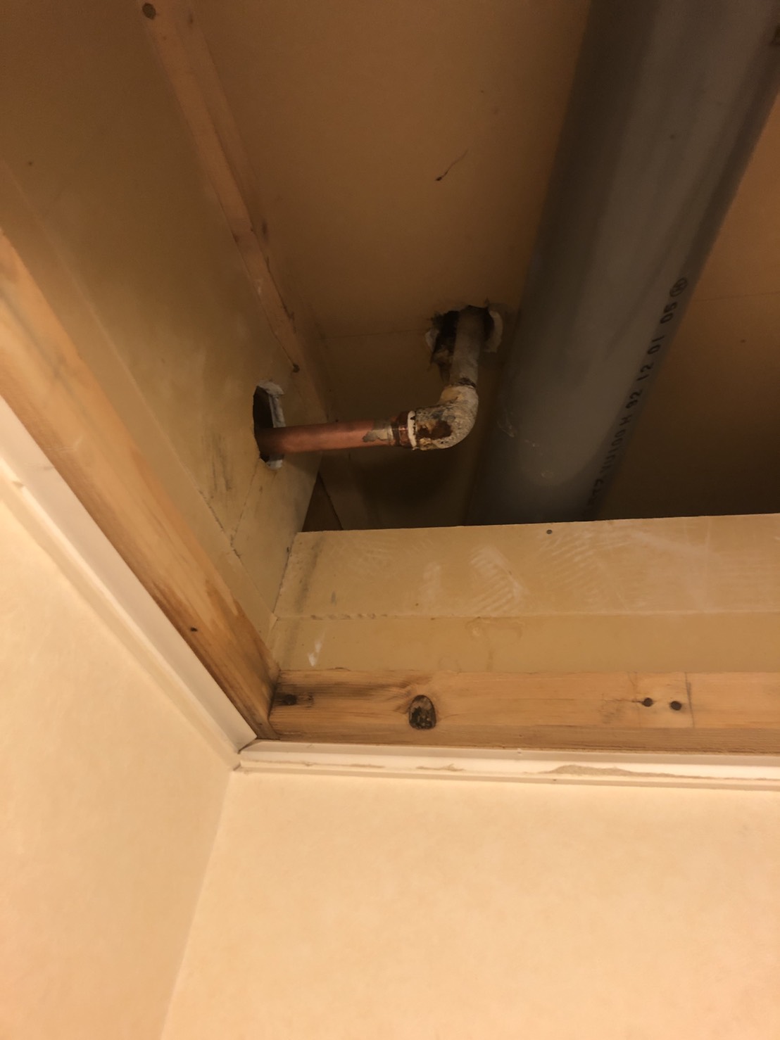 水漏れの場所は、上の階に立ち上がっている水道管から水漏れしていました。