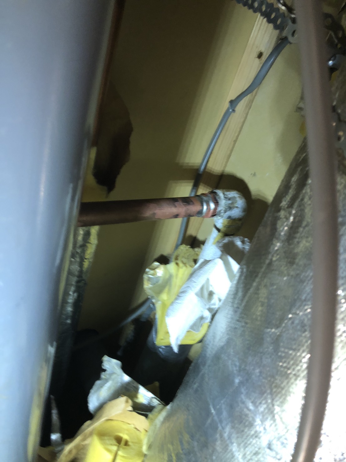 通水テストを行い水漏れしないことを確認し保温材を巻き付け閉口作業を行いました。