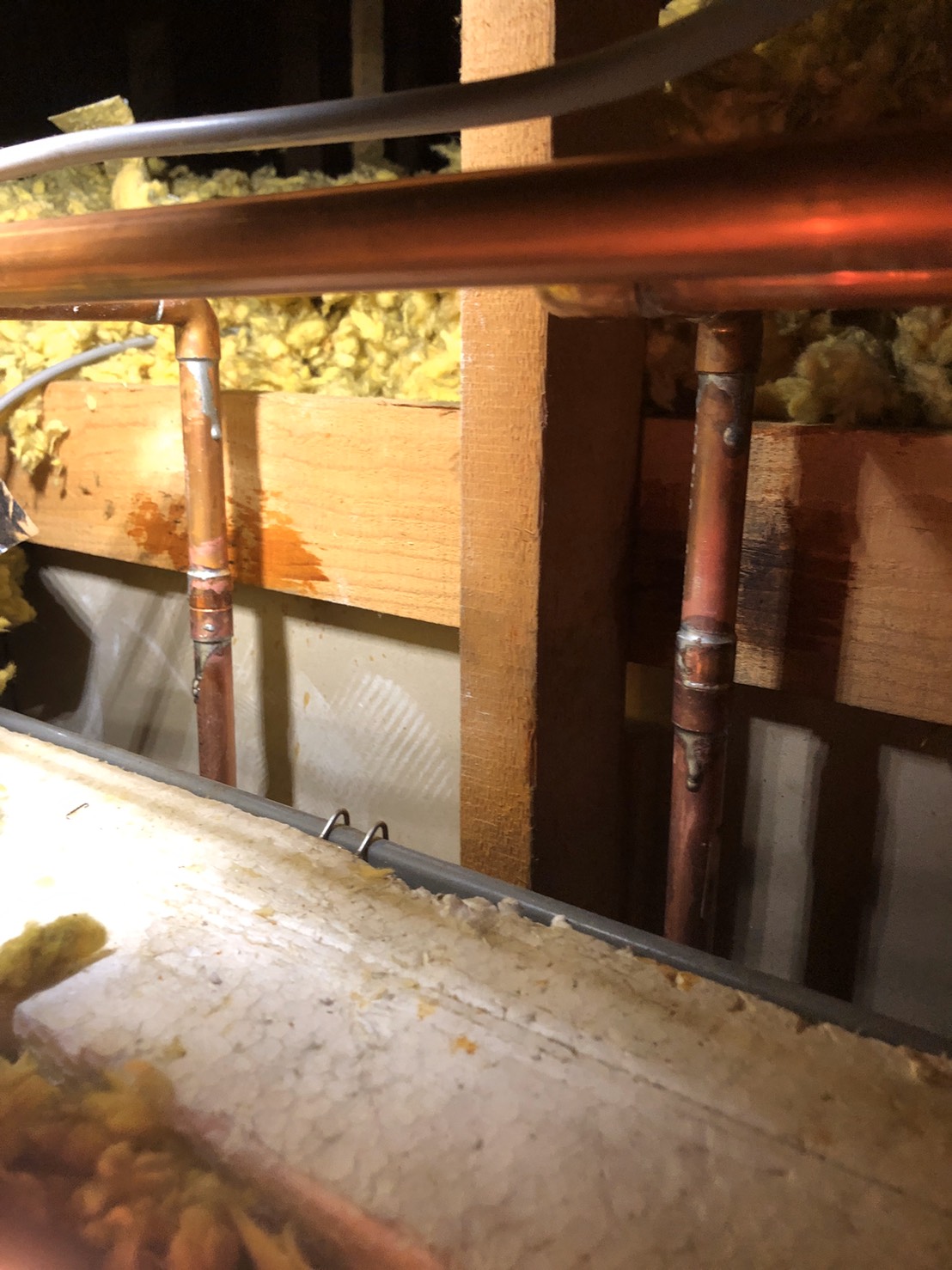 お風呂の水道管を確認した所、水道管が破裂していました。