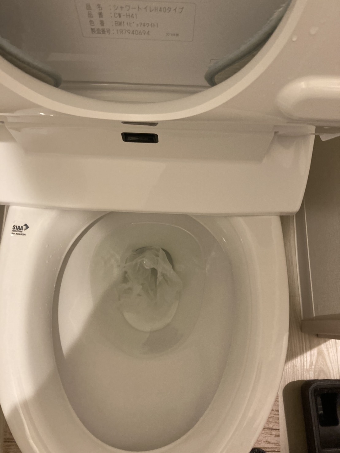 お客様に心当たりをお尋ねした所、お掃除シートを大量に流してしまったとの事で、つまり抜き作業のお見積りを事前にご提示しご納得いただき作業を行いました。