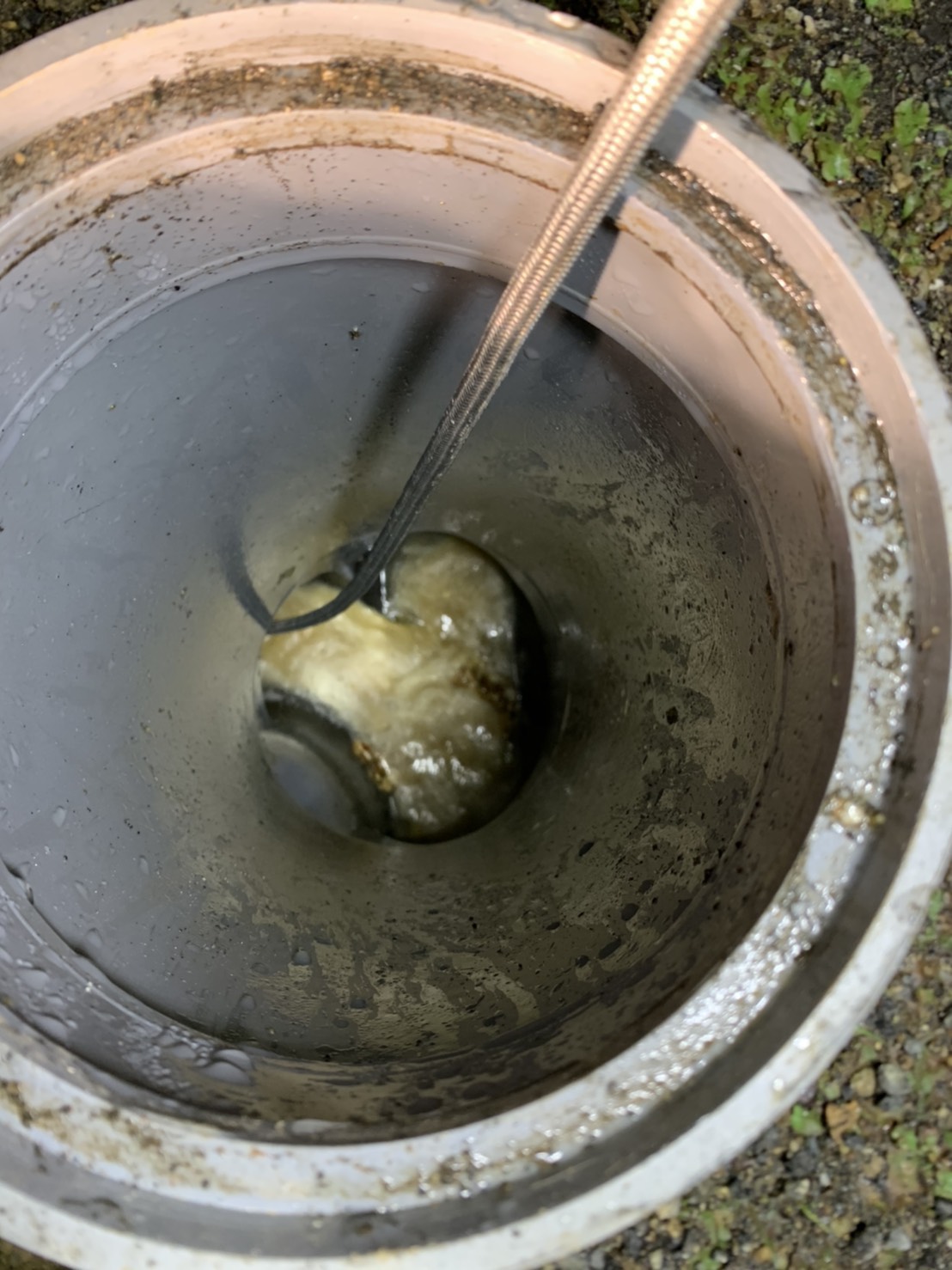 屋外の排水管を点検した所つまりの症状があった為、お客様に高圧洗浄作業のお見積りを提示しご納得いただき作業を行いました。