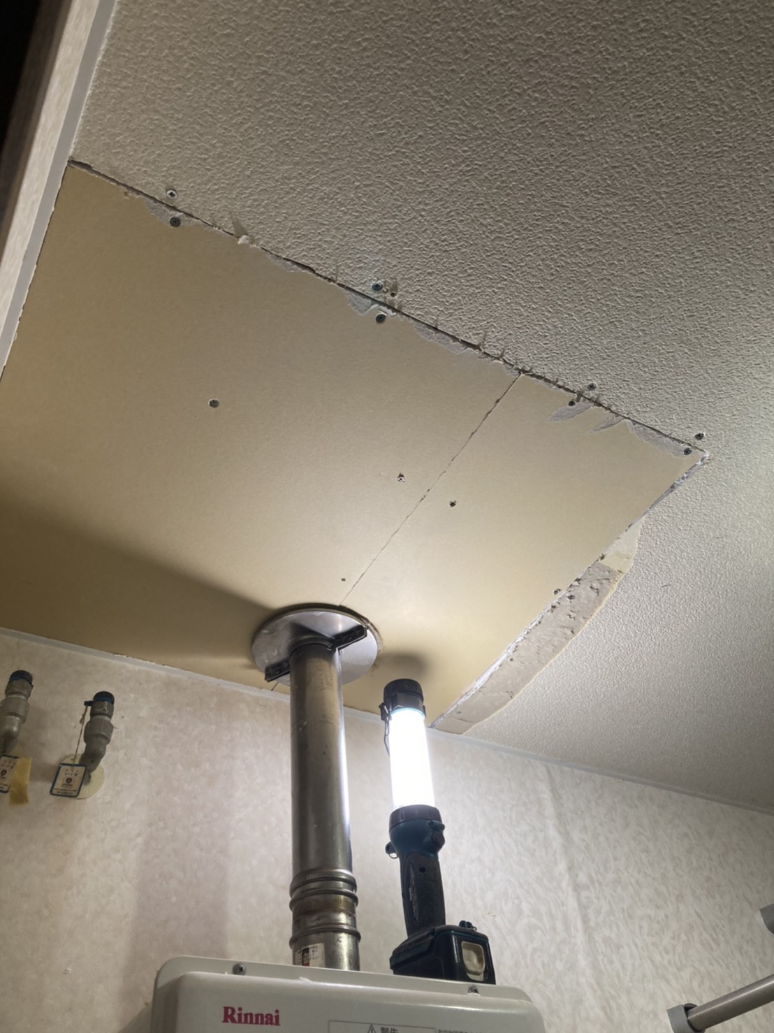 本日はお客様から脱衣所の天井から水が落ちてくると入電があり即出動しました。