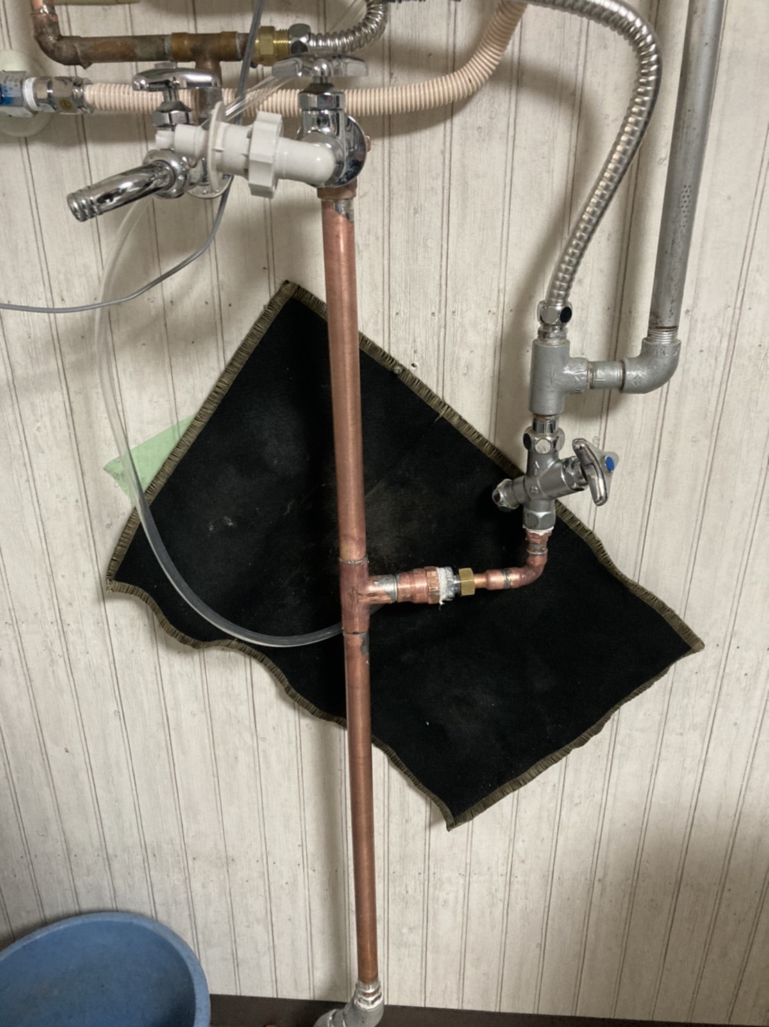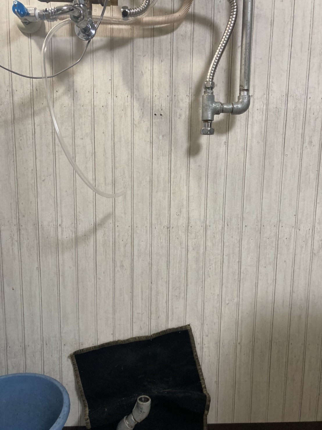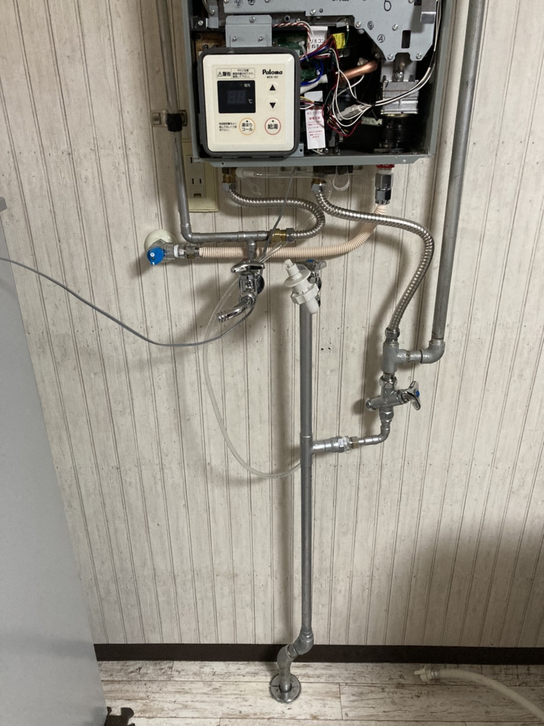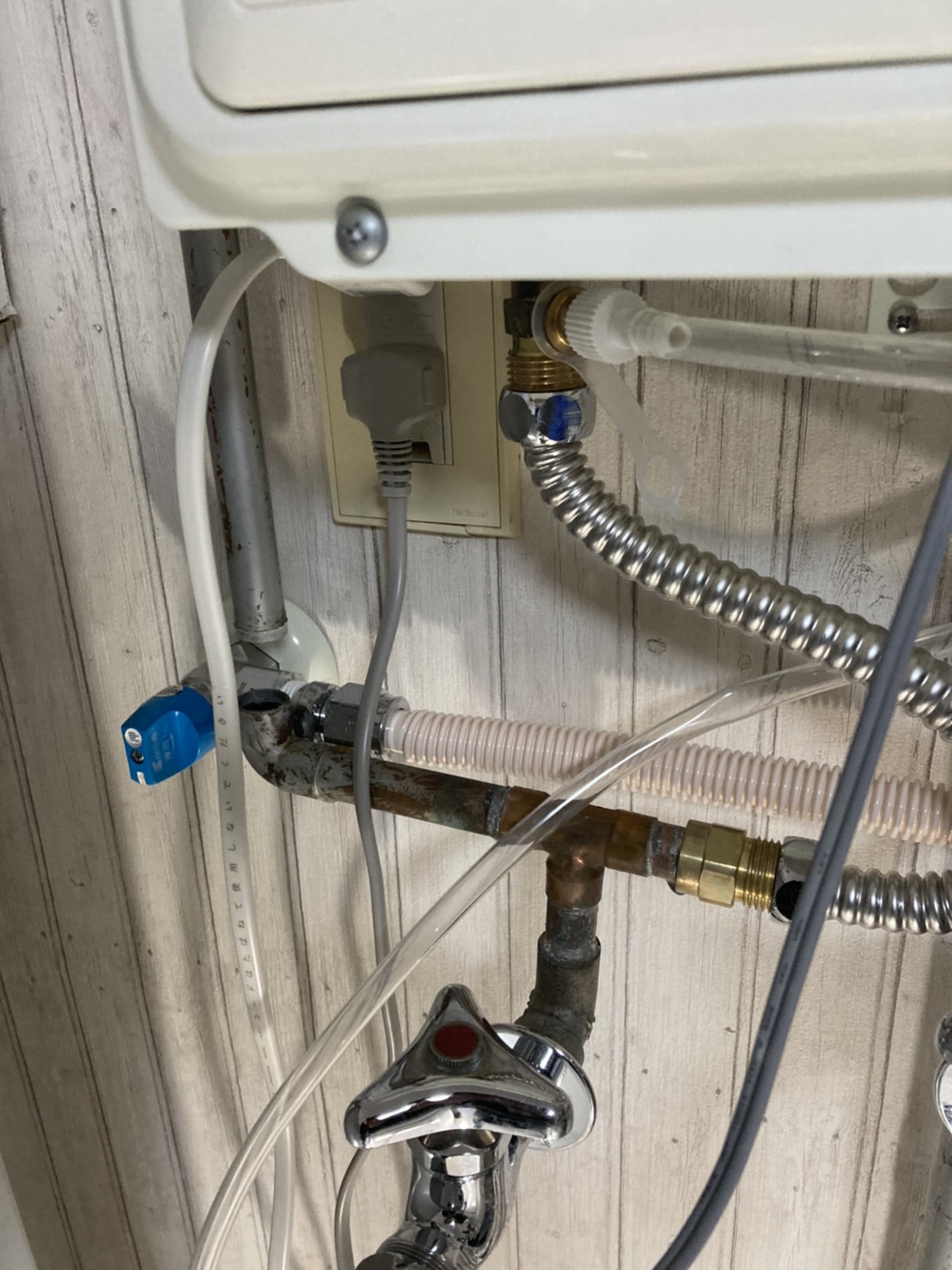 本日はお客様から給湯器の配管から大量に水漏れして困っていると入電があり即出動しました。