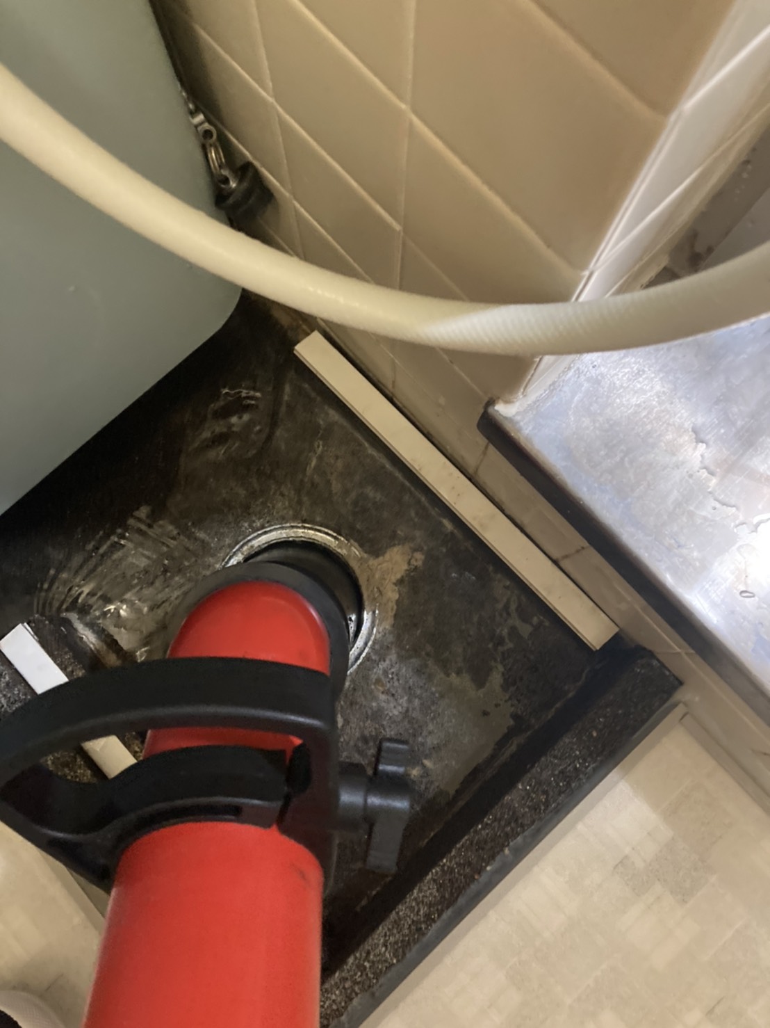 症状を確認した所、強力につまっていてお風呂の排水をすると洗濯機の排水から汚水が溢れてきてしまう状態でした。