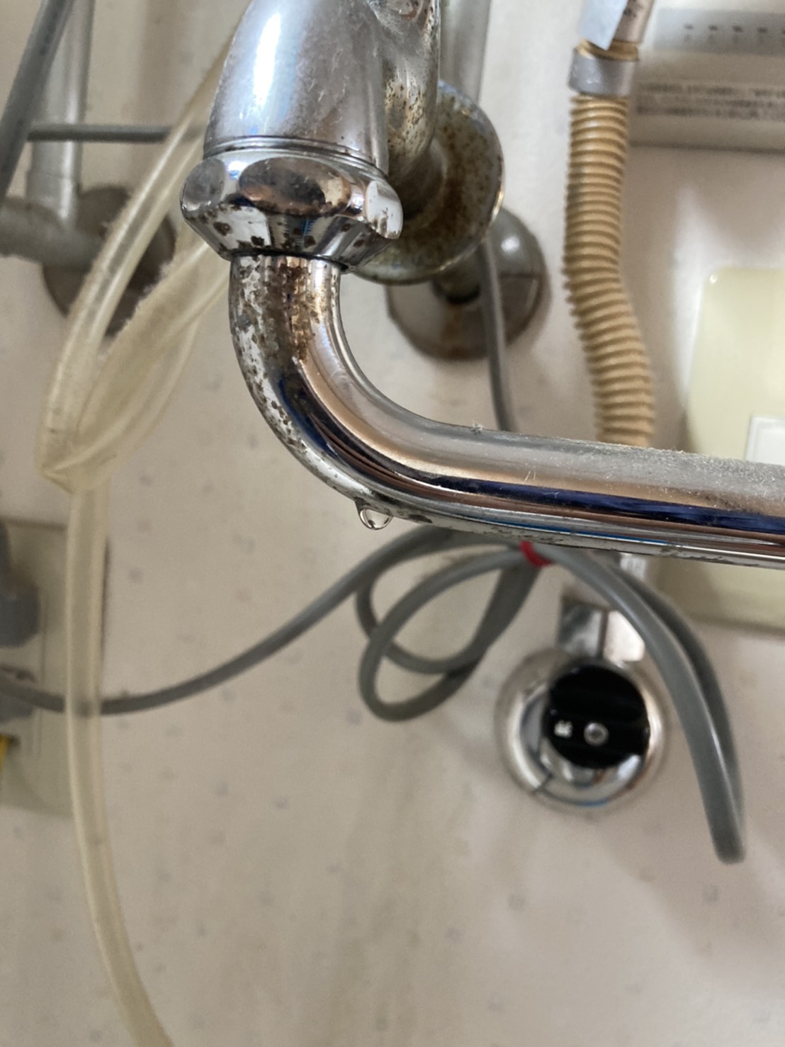 水漏れ箇所を確認すると、吐水パイプの取り付け部から水漏れしていた為、修理の見積りを事前に提示しご納得いただき作業を行いました。