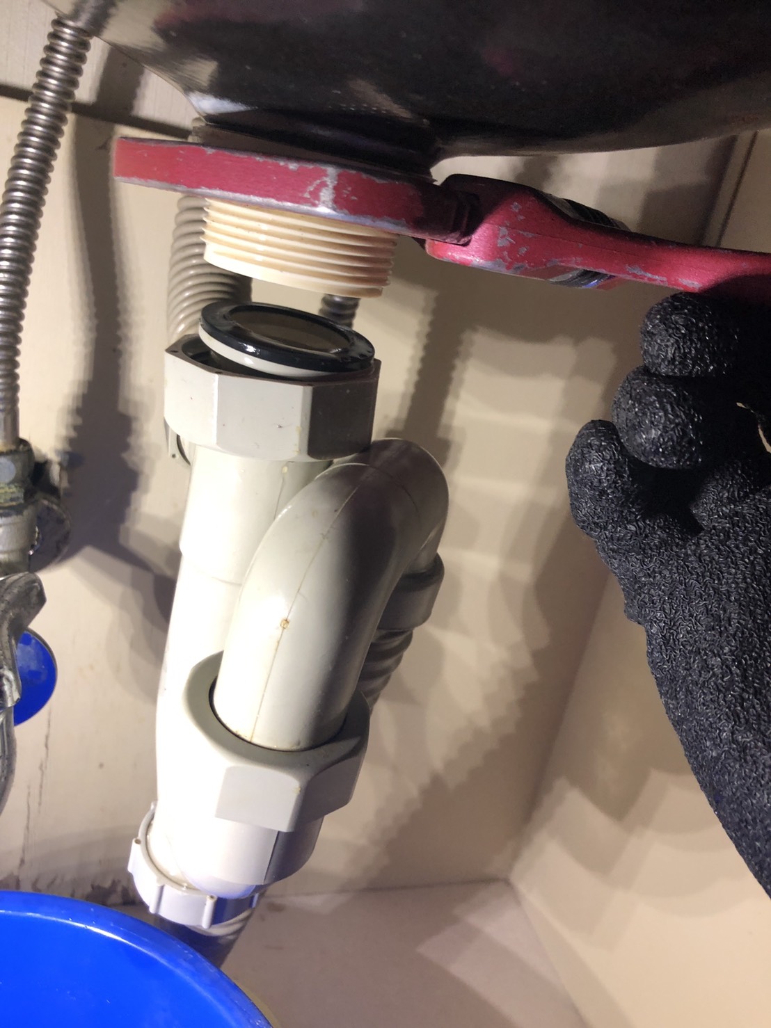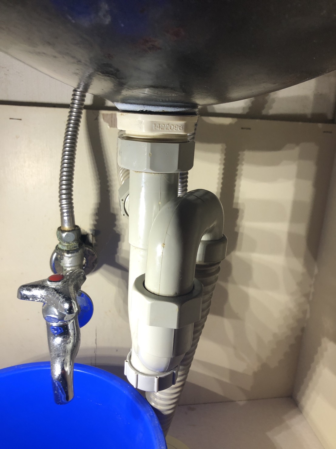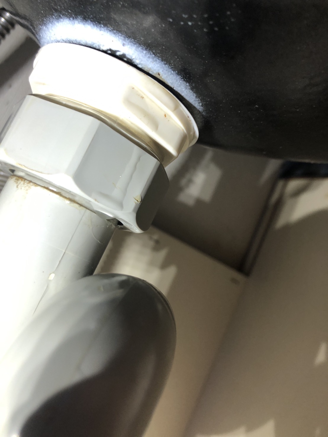 水漏れ箇所は排水トラップの取付ナットからでした。