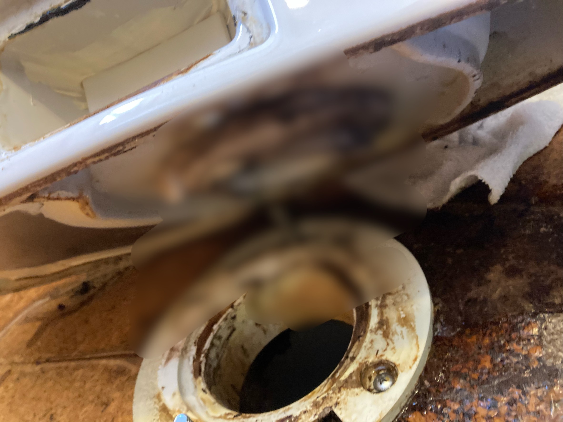 トイレを外して便器から異物を取り除き症状が改善しました。