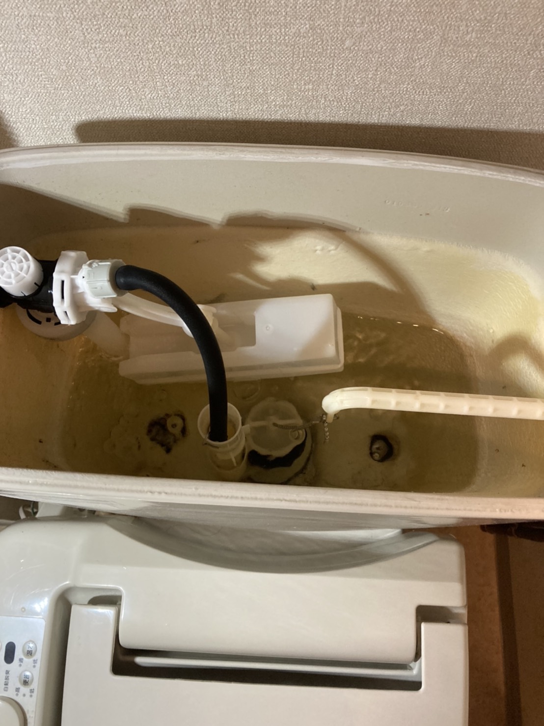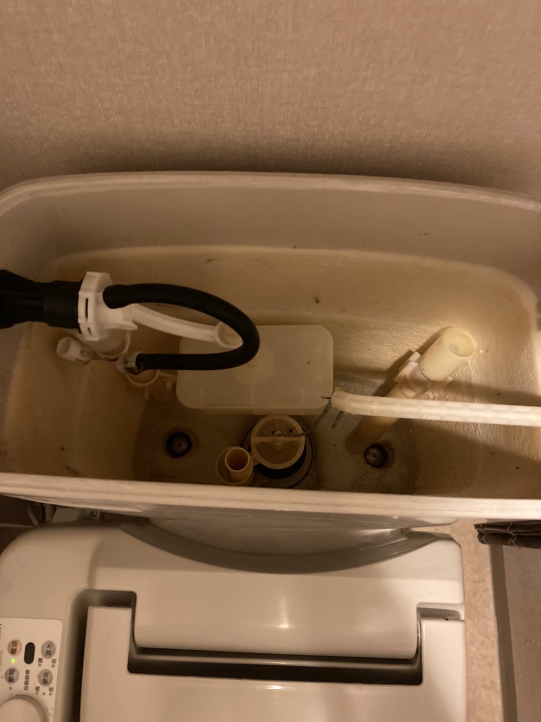 トイレタンク内を確認した所、タンクの水が溢れないようにする筒が折れてしまっていてタンクに水がたまらない症状でした。