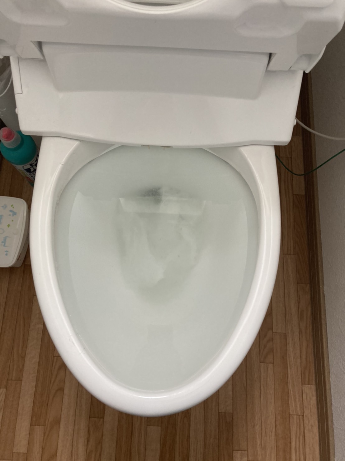 到着時には汚物が流れないで残っている状態で、試しに流してみても水位が上がるだけでした。
