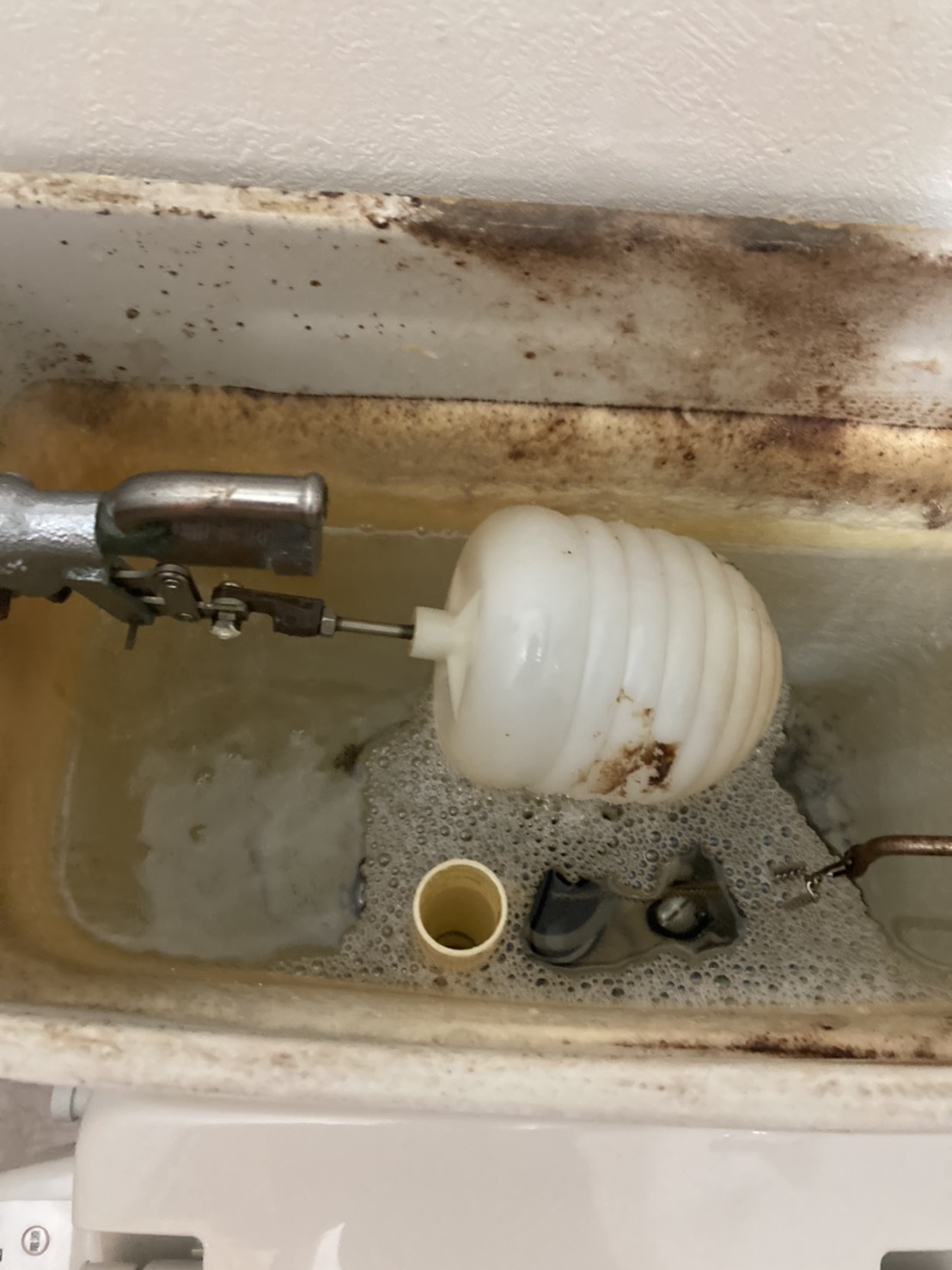 タンク内を確認した所、トイレのフロート弁が壊れて水が出続けている事が原因でした。