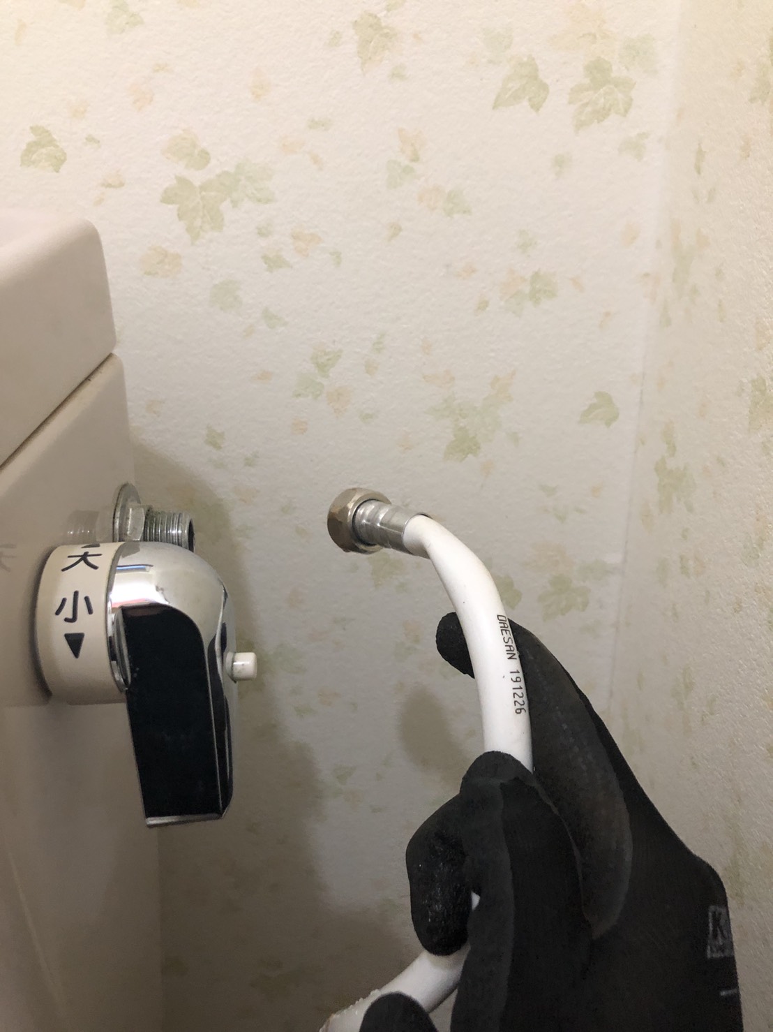 確認してみるとトイレの給水ホースがねじれてタンクの中に給水されない事が原因だったため、修理のお見積りを事前に提示しご納得いただき作業を行いました。