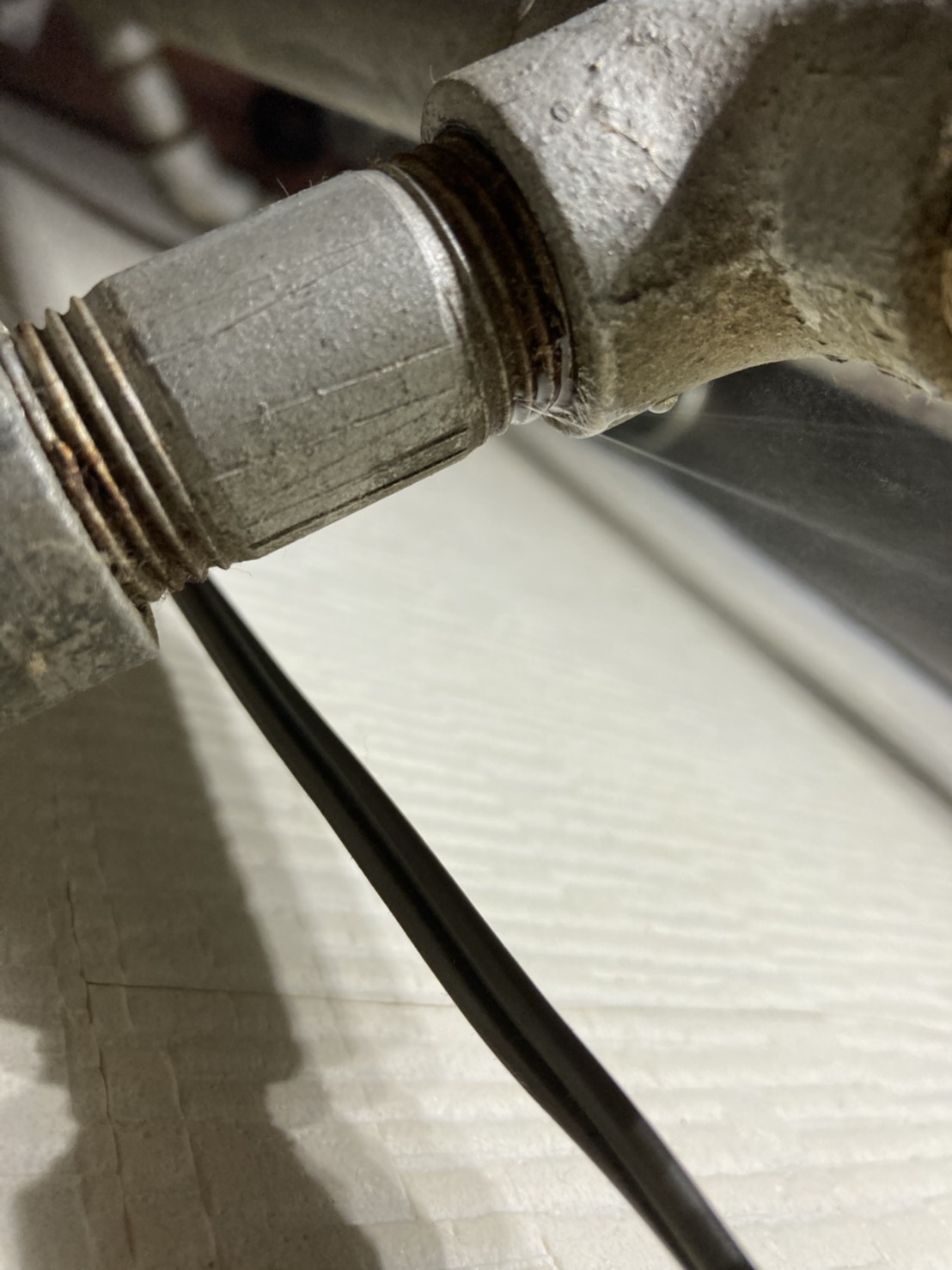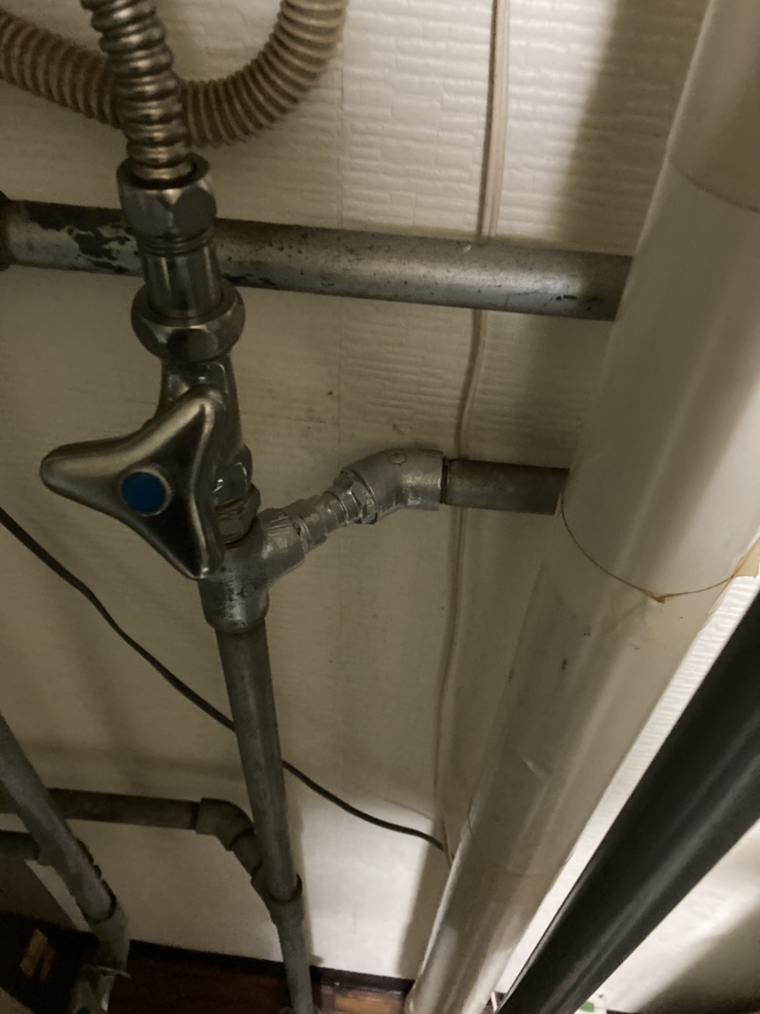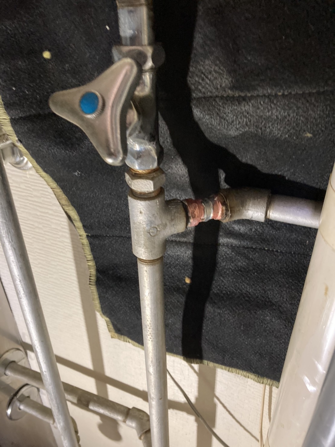水漏れしていた鉄管の継手を外し、新たに銅管で作成し症状が改善しました。