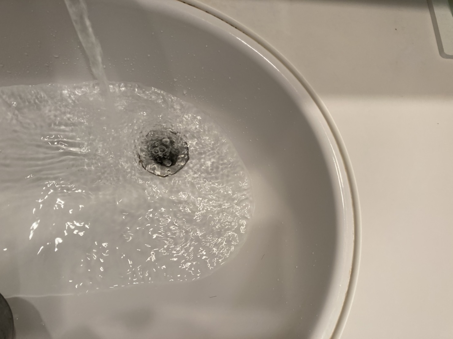 本日は、お客様から洗面所がつまってしまい流れなくて困っていると入電があり即出動しました。