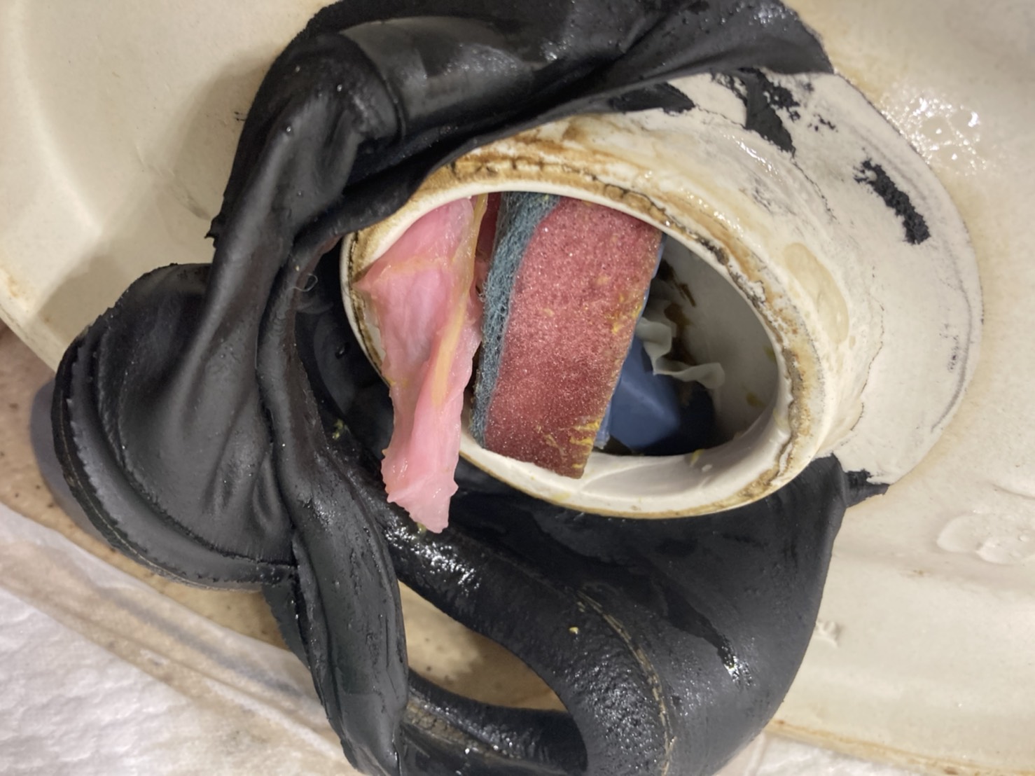 トイレを外して便器から異物を取り除き症状が改善しました。