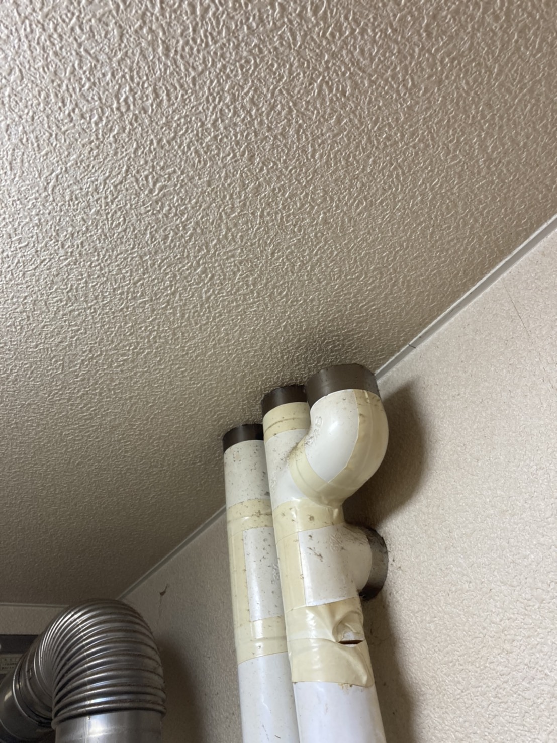 本日はお客様から脱衣所の天井から水が落ちてくると入電があり即出動しました。