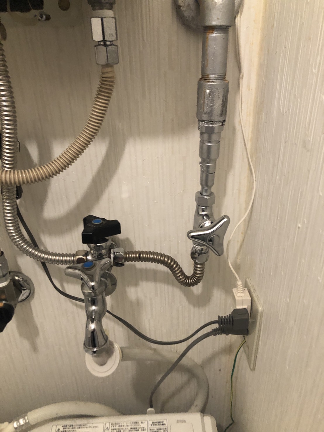 本日はお客様から給湯器の配管から水が噴き出してくると入電があり即出動しました。