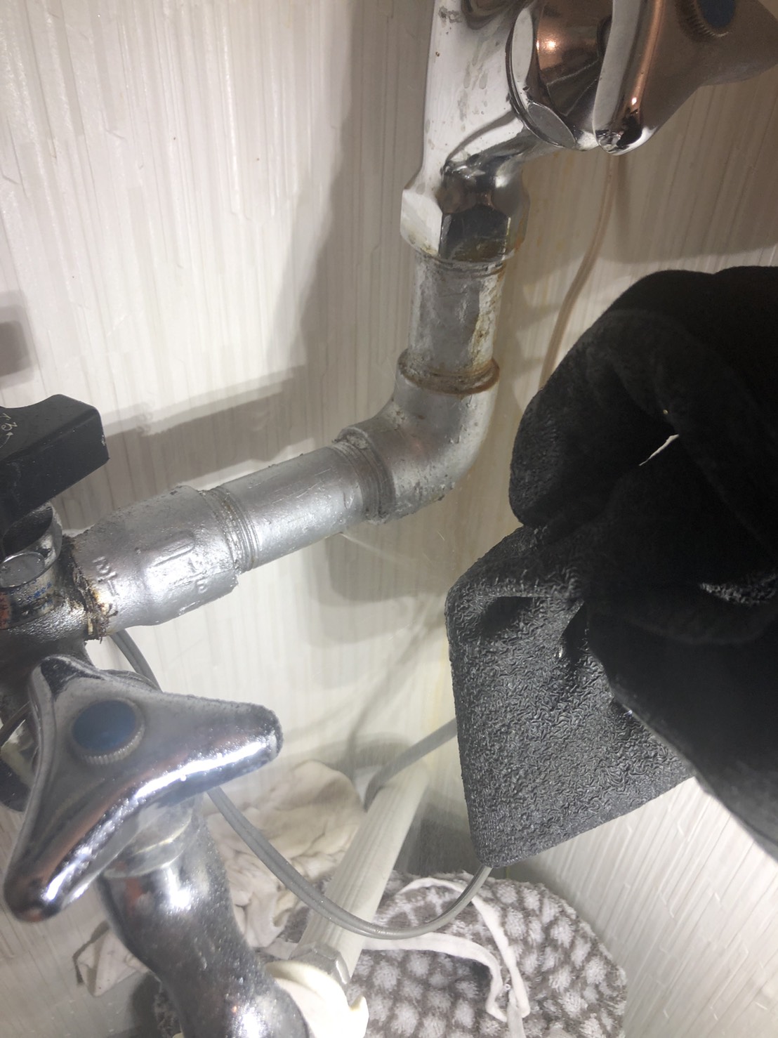 水漏れしている配管を切断し新しい配管を作り症状が改善しました。