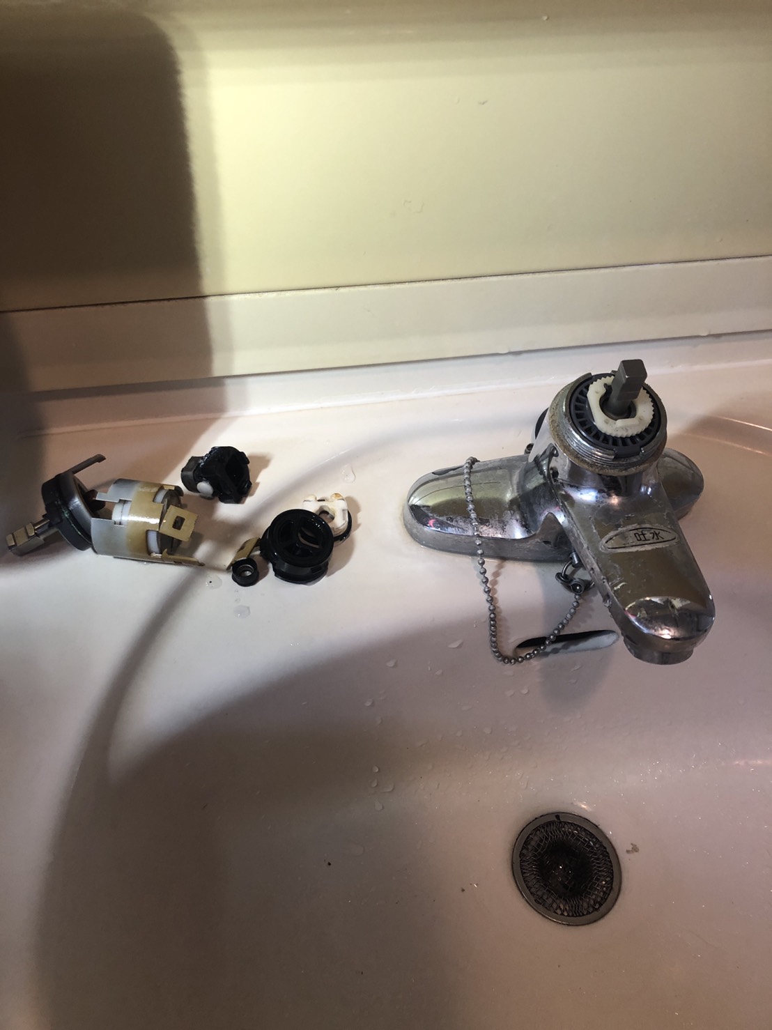 水漏れの原因は蛇口内の部品の劣化が原因で、お客様とご相談し部品の交換作業を行いました。