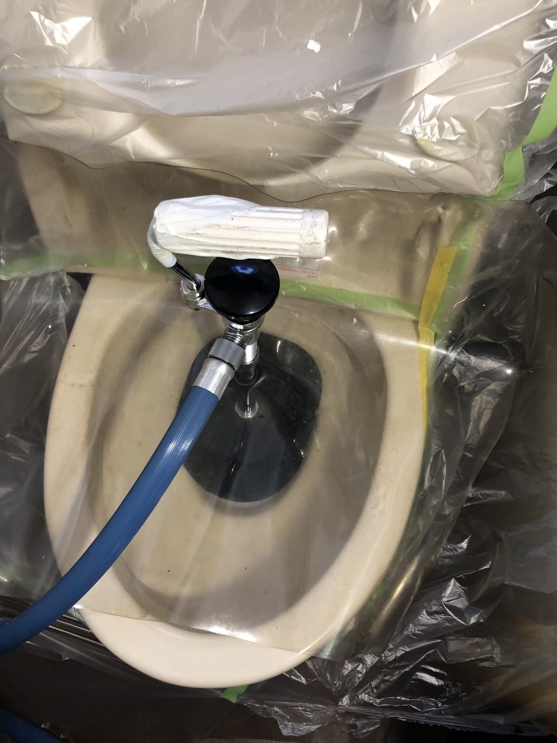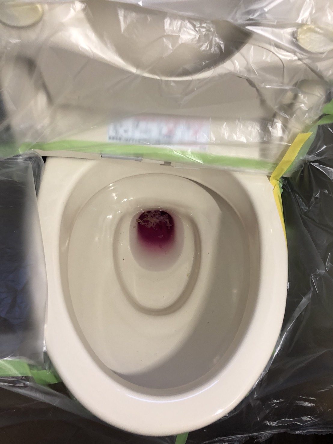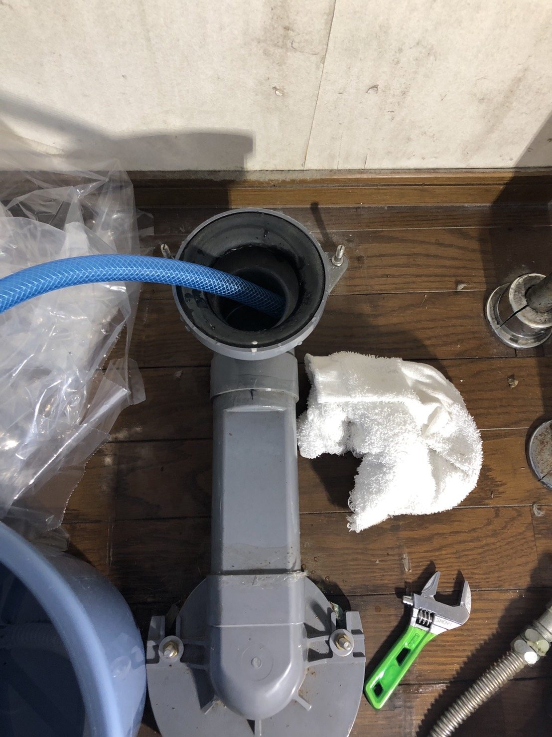 作業後、排水テストを行った所、全く流れない症状は改善しましたがまだ流れが悪くトイレの便器内か排水管に問題があると判断し、大便器を外して大便器内とトイレの排水管につまりがないか確認した所、排水管にお掃除シートなどがつまっており、排水管の洗浄を行い症状が改善しました。