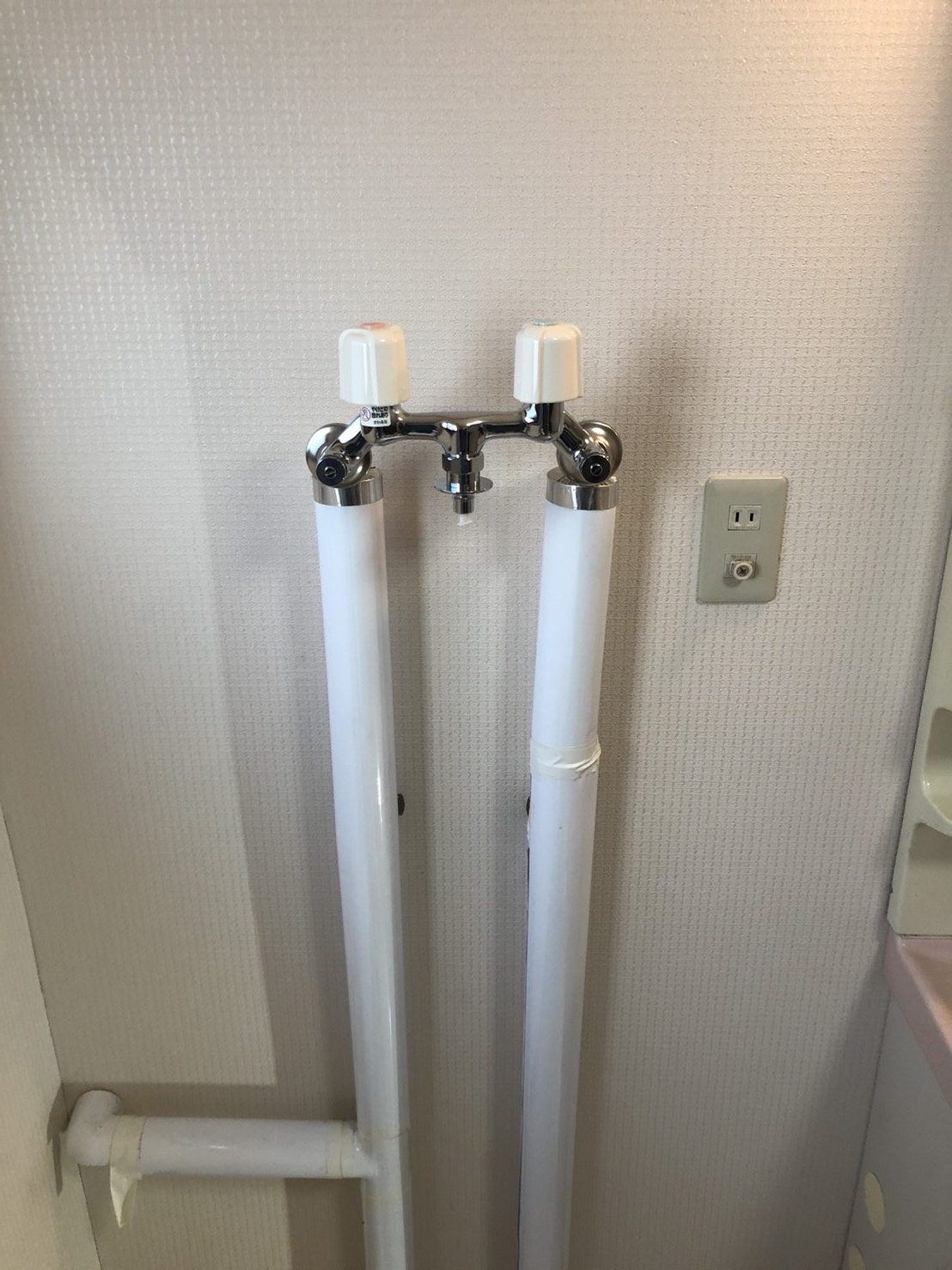 本日は、お客様から洗濯機の蛇口から水が噴き出してくると入電があり即出動しました。