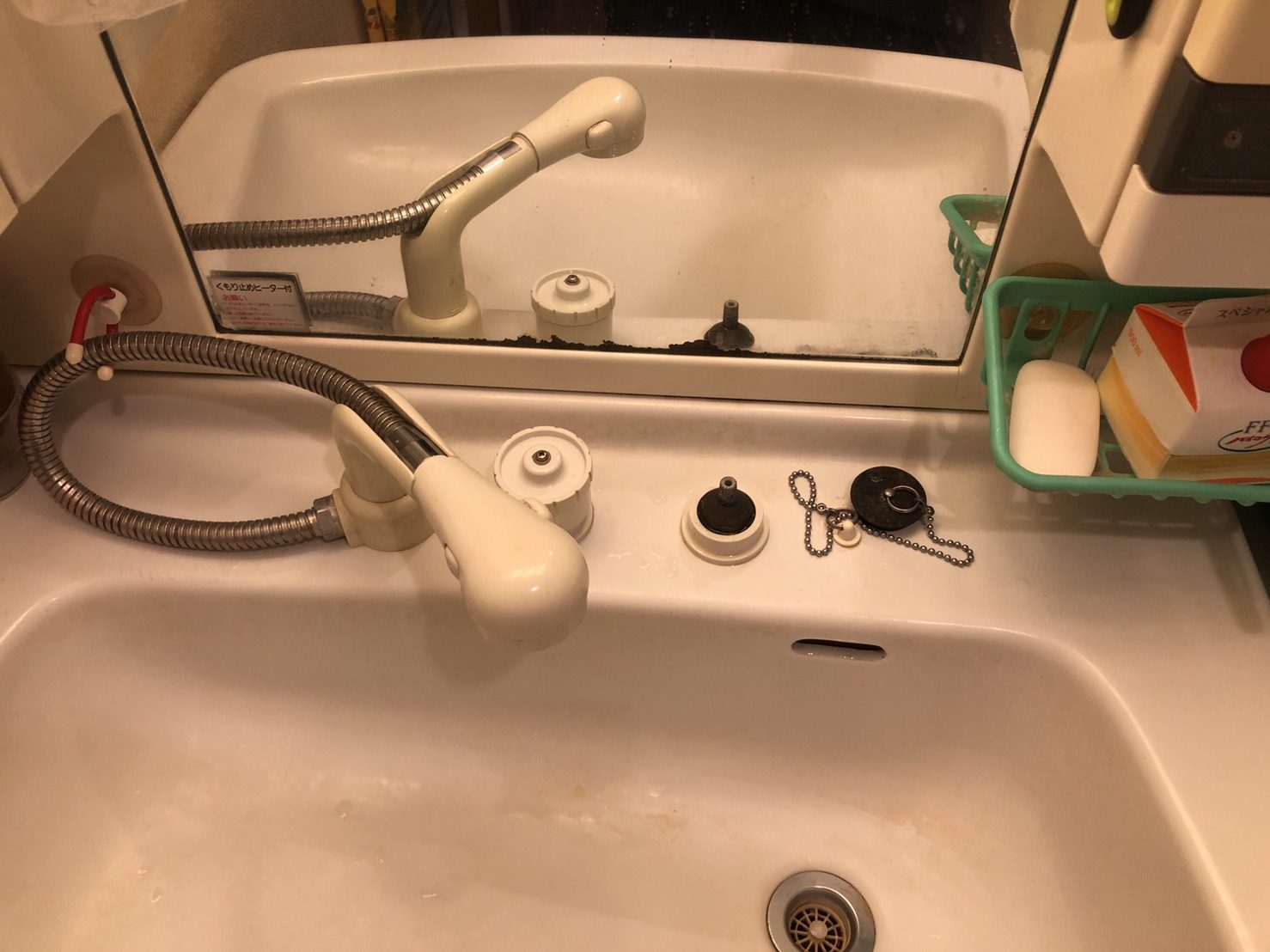 洗面所の蛇口を点検してみると、蛇口のハンドルが回り続ける症状の為、蛇口内の部品の劣化が原因と判断し事前にお見積りをご提示しご納得いただき作業を行いました。