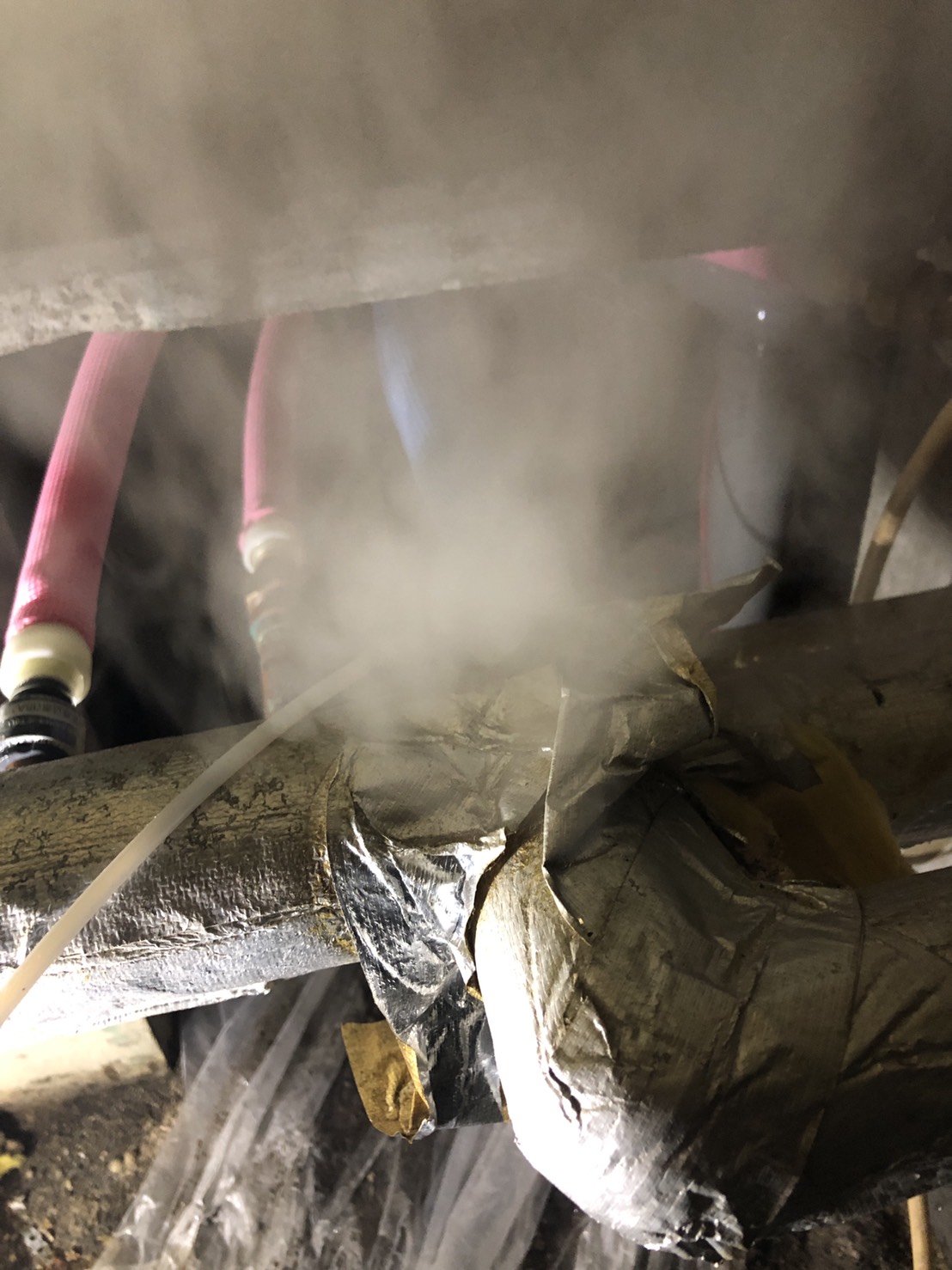 床下に入りお風呂の水道管を確認してみると凍結していました。