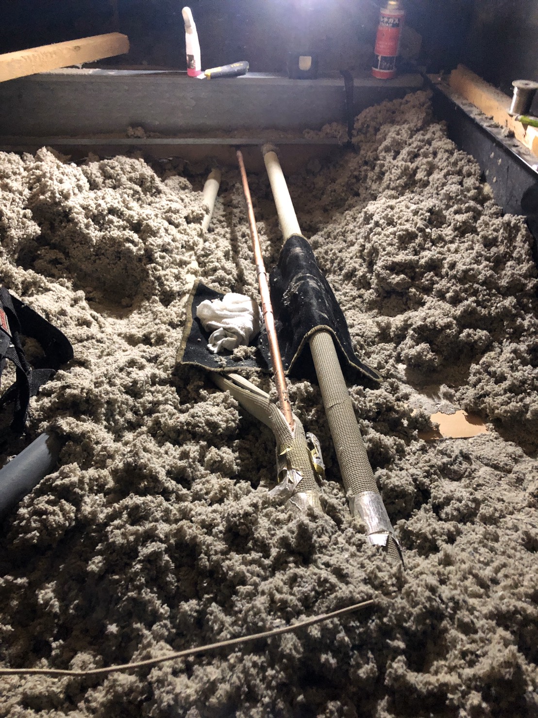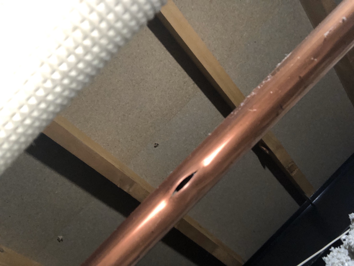 点検口内を確認した所、給水管が破裂して水が噴き出している症状でした。