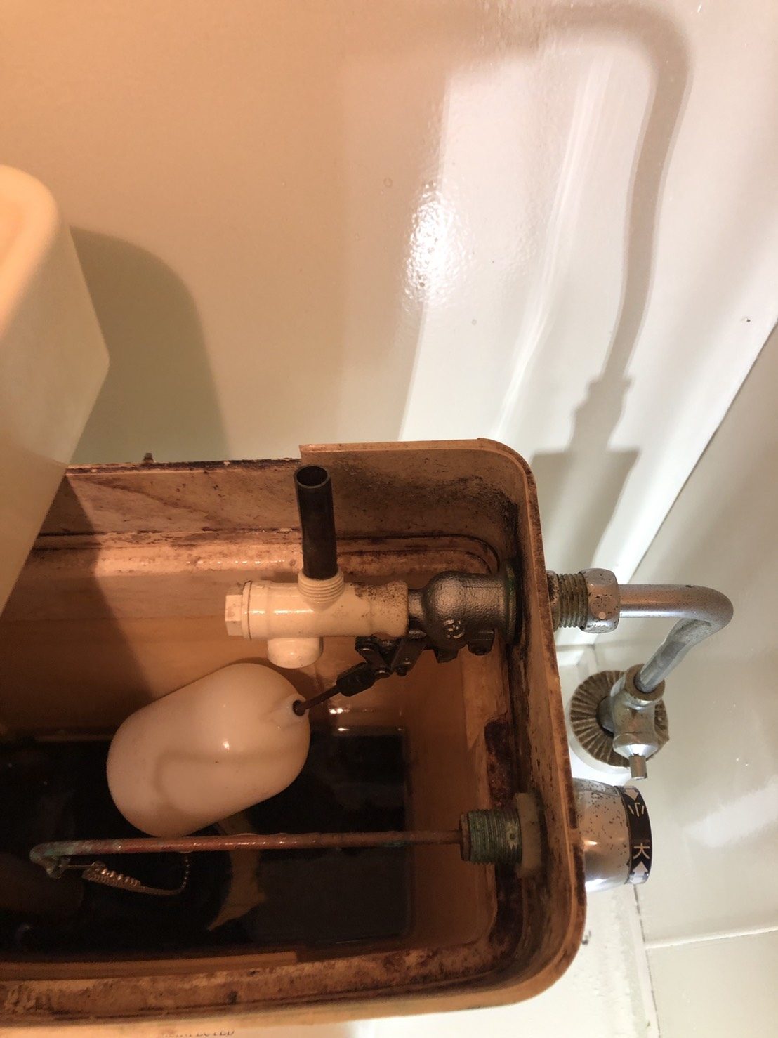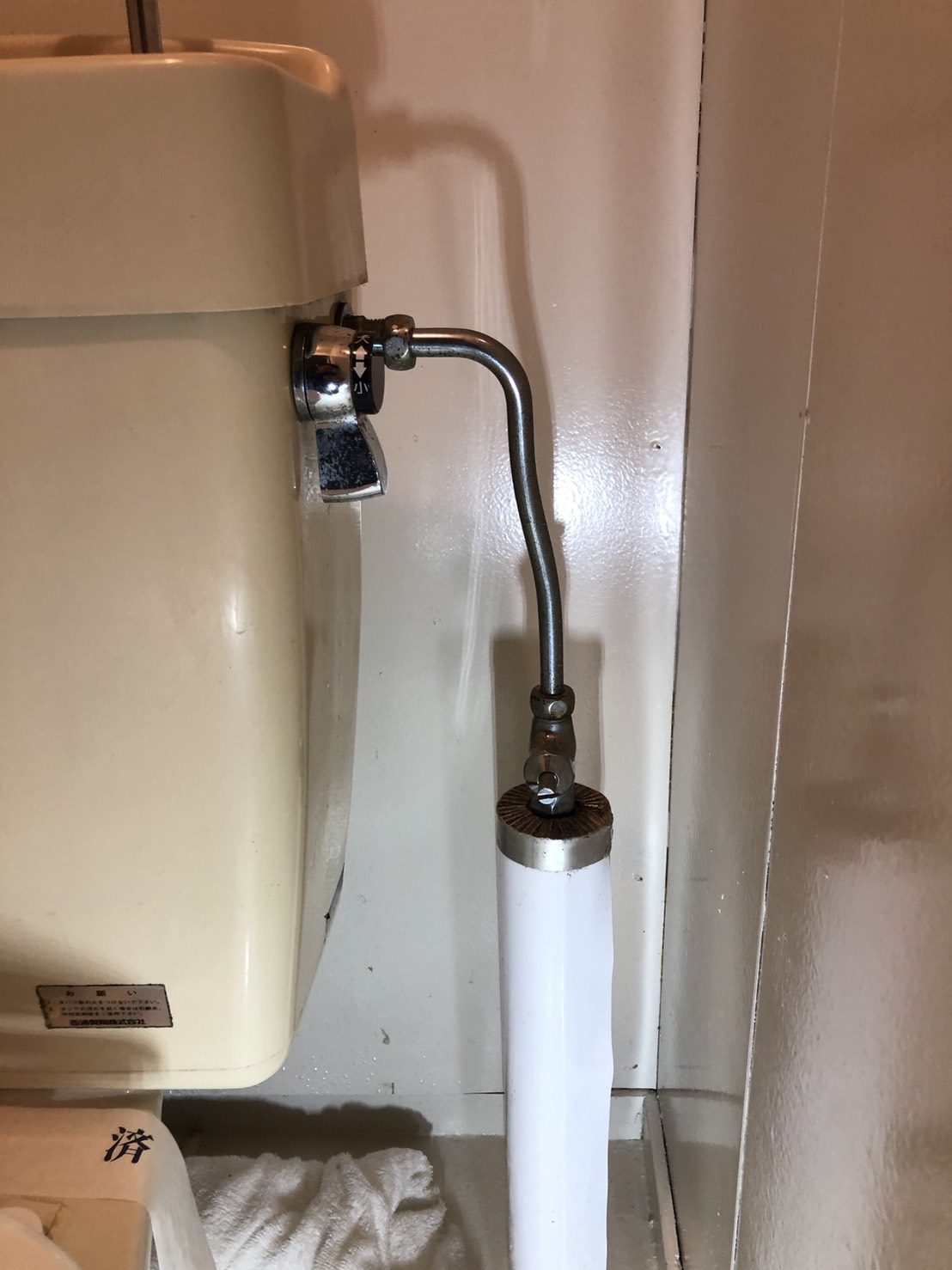 本日は、お客様からトイレのタンクから水が漏れてきてトイレの床が水浸しになって困っていると入電があり即緊急出動しました。
