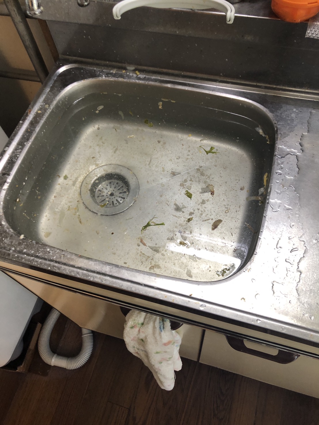 本日は、お客様から台所の水が流れなくて困っているので見てほしいとご連絡があり即出動しました。