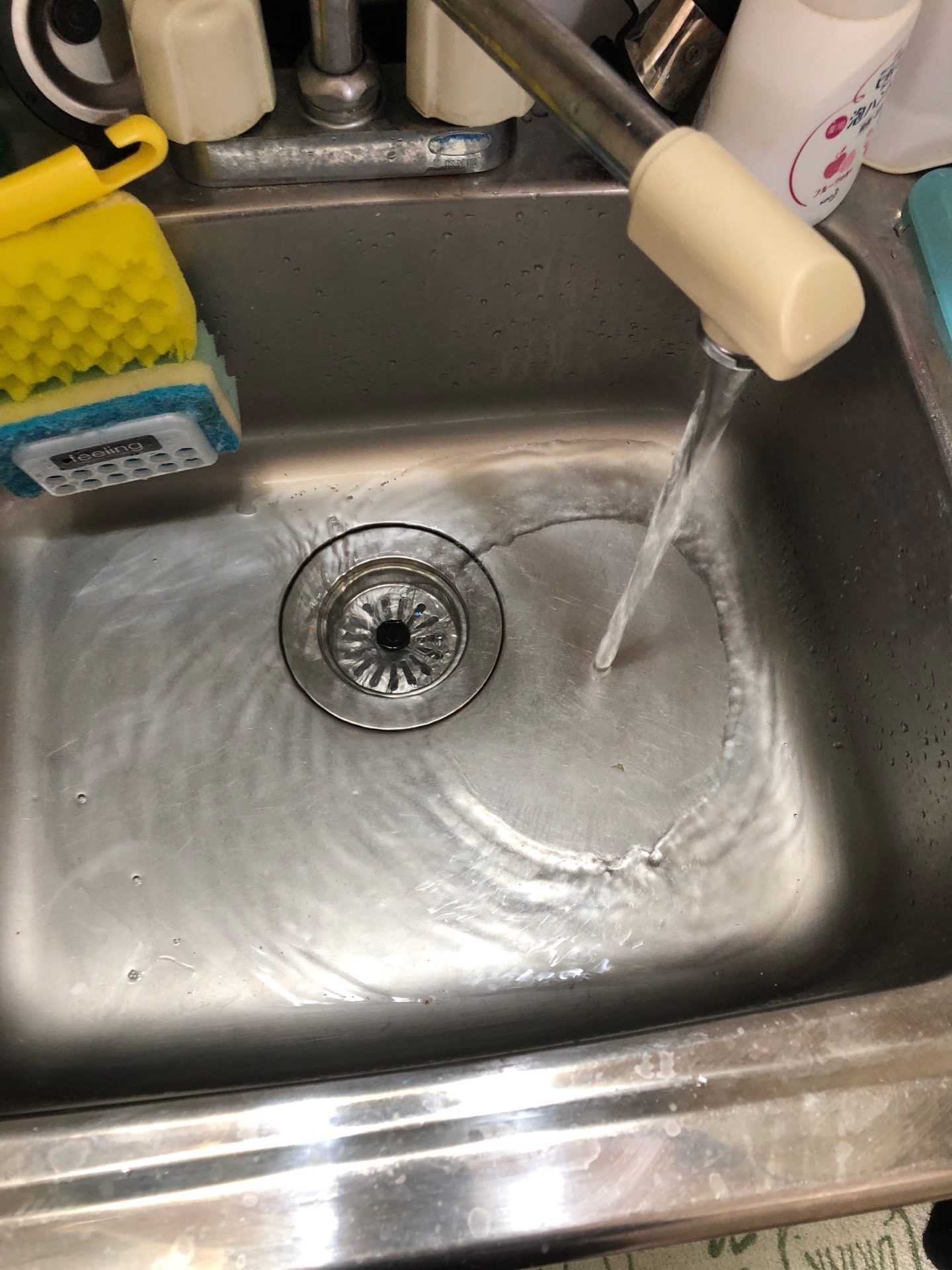 お伺いしたところはアパートの一室で二日ほど前から台所の水が流れなくて困っているとの事でした。