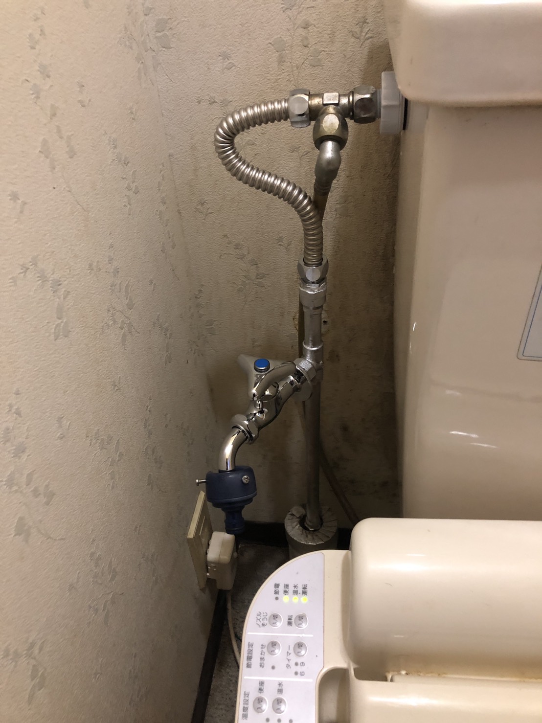 本日は、お客様からトイレの給水管に蛇口を付けたいので見てほしいと入電があり即出動しました。