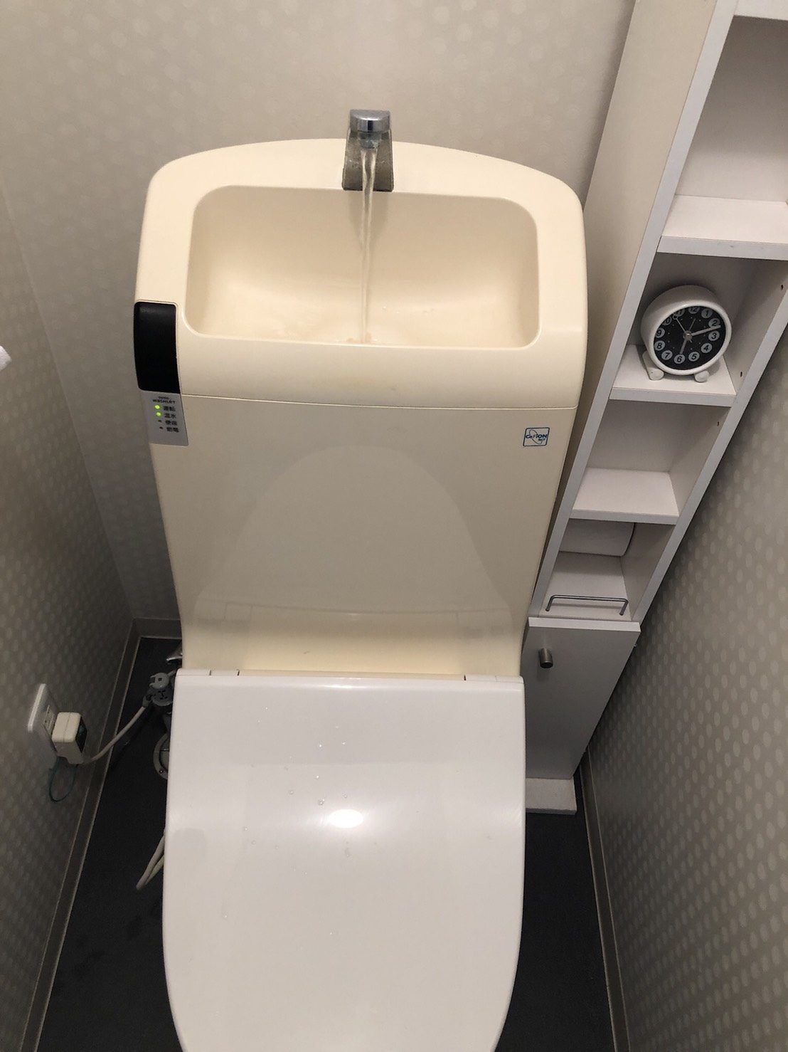 タンクの蓋を開けて確認した所、手洗い管の給水ホースが外れていた事が原因でした。