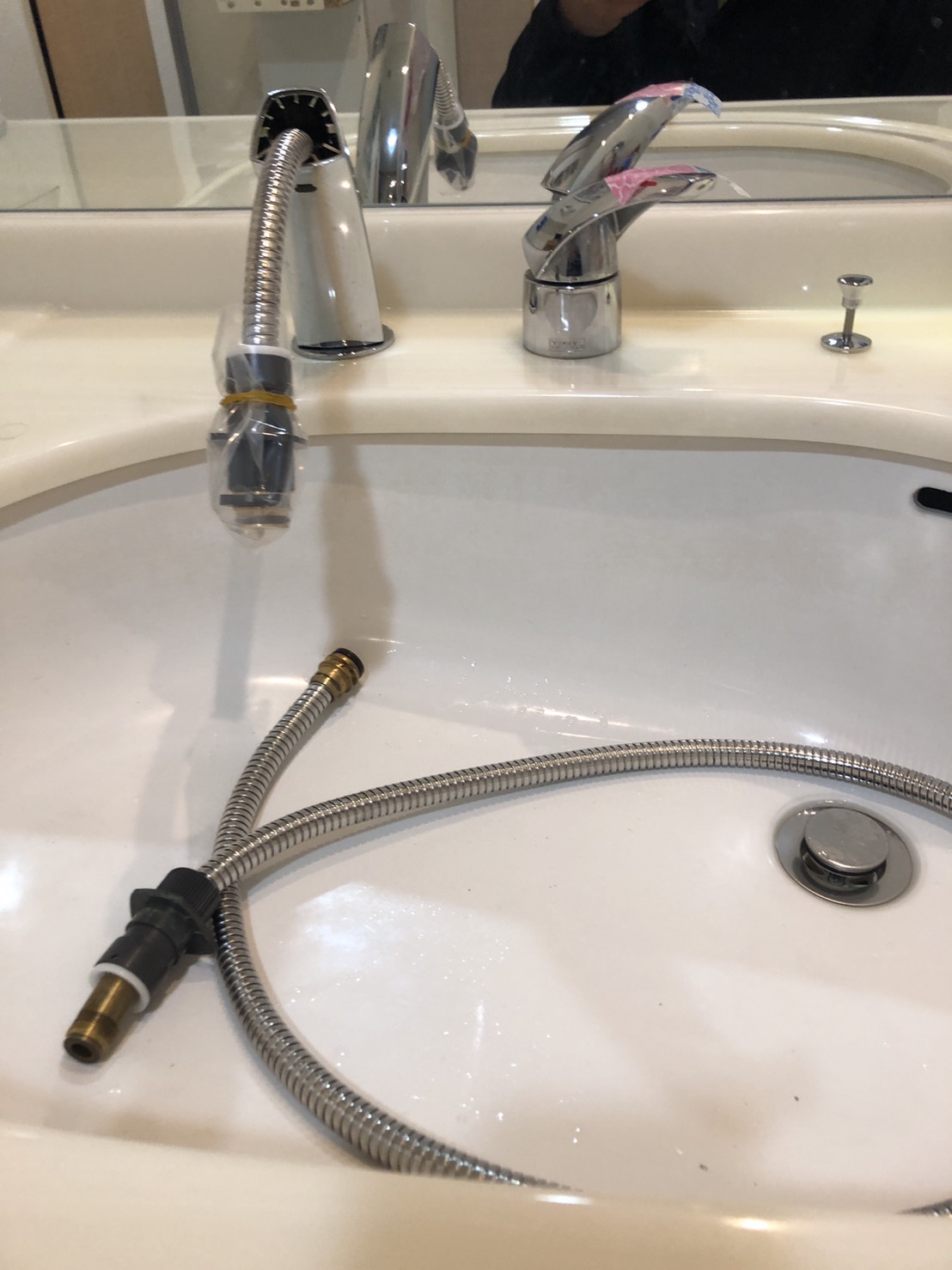 浄水器一体型の蛇口が付いていて水漏れ箇所を確認した所、蛇口のシャワーホース部から水漏れしている症状でした。