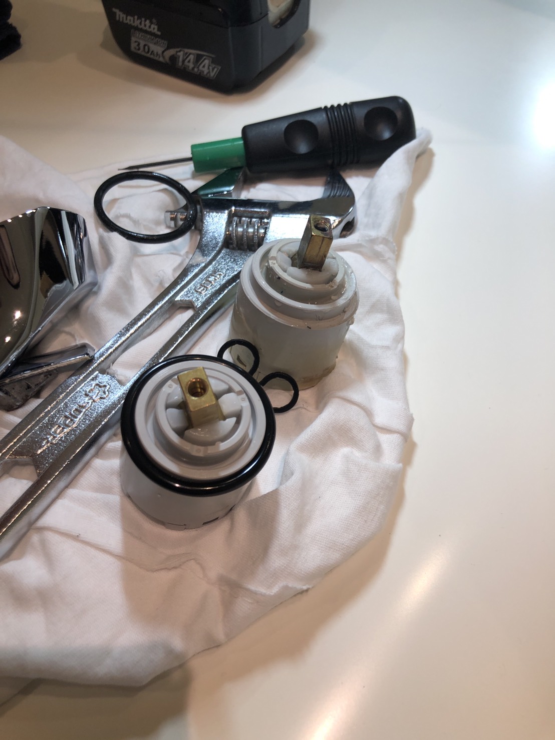 水漏れの原因は蛇口内の部品の劣化が原因でした。