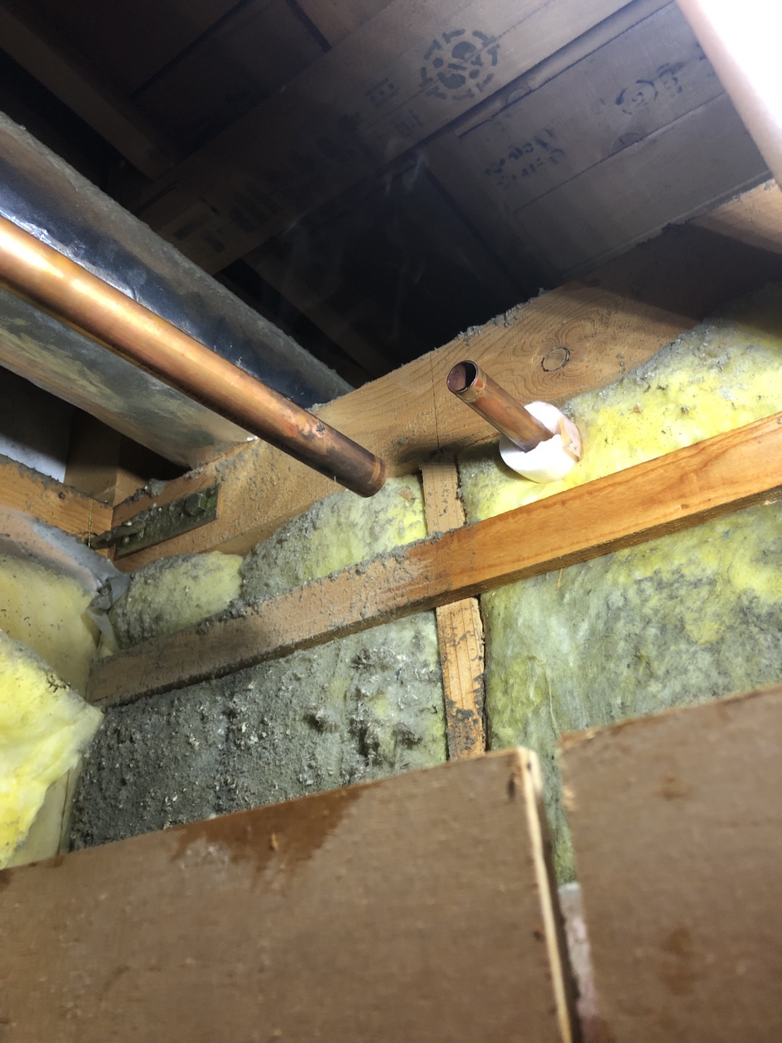 破裂箇所を切断し、新しい水道管をつなぎ症状が改善しました。