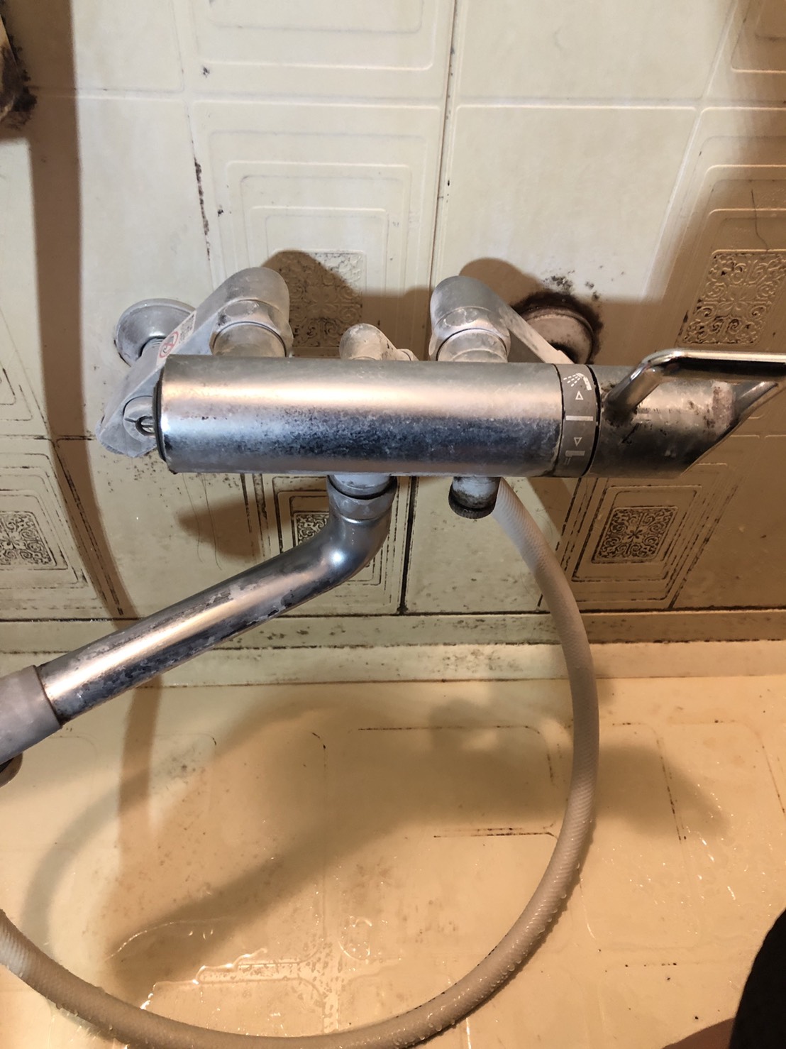 風呂の蛇口の中の部品の劣化が水漏れの原因でした。水漏れの原因となっている部品の交換が必要とお伝えした所、20年以上使っているので本体交換をして欲しいとお客様に言っていただき、事前に本体交換のお見積りをご提示しご納得いただき作業を行いました。