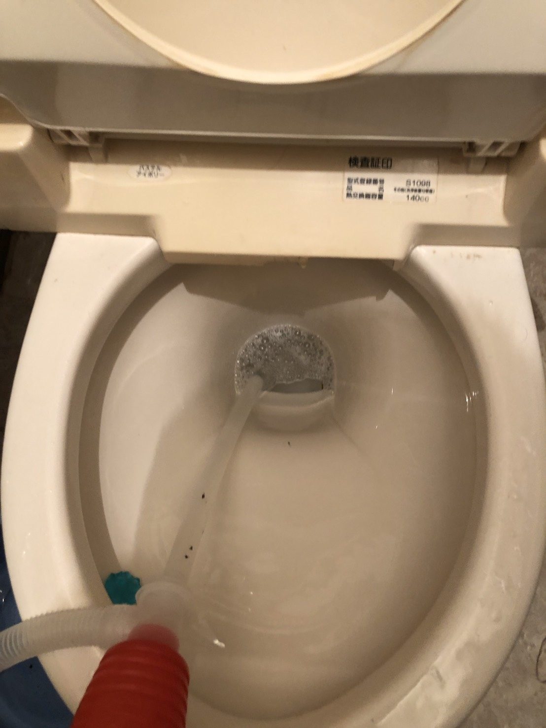 お伺いした所は戸建て住宅で急につまってしまいお客様ご自身でラバーカップで直そうとしましたが改善せず困っていたとの事でした。
